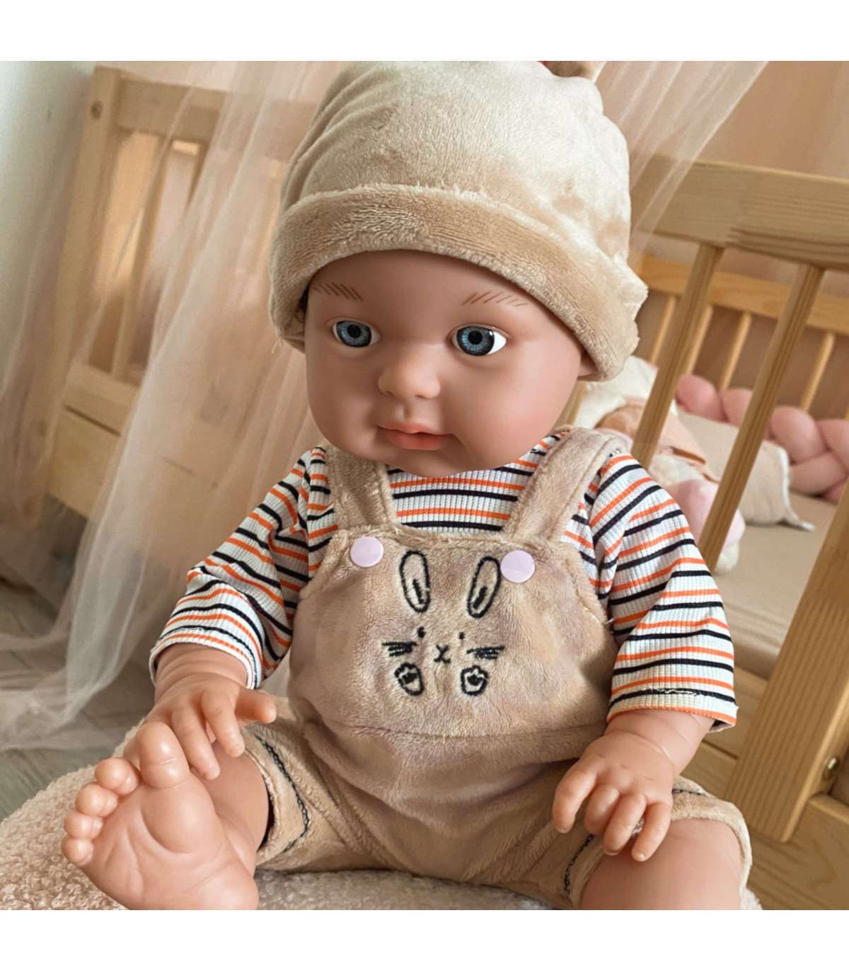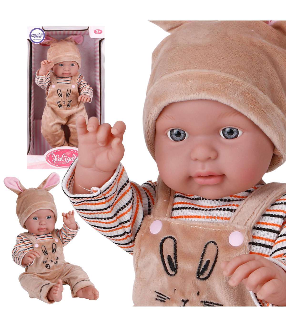 Beebinukk brändilt Woopie võlub iga last! Armas beebi jänku-kostüümis saab kindlasti sinu lapse lemmikmänguasjaks. Beebi on 46 cm pikk ja riietatud kostüümi / bodisse koos kapuutsiga ja sussidega. Nukul on liigutatavad jäsemed ning seda saab asetada istuvale või seisvale asendile. Nukuga mängimine arendab lapses empaatiat ja vastutustunnet. Nukk on armas väike beebi, kes vajab palju hoolt ja armastust. Mänguasi on valmistatud suure hoolikusega, truult taasesitades tõelise beebi välisilmet, viimistletud kõige peenemates detailides ja valmistatud väga meeldivast puudutusele materjalist!