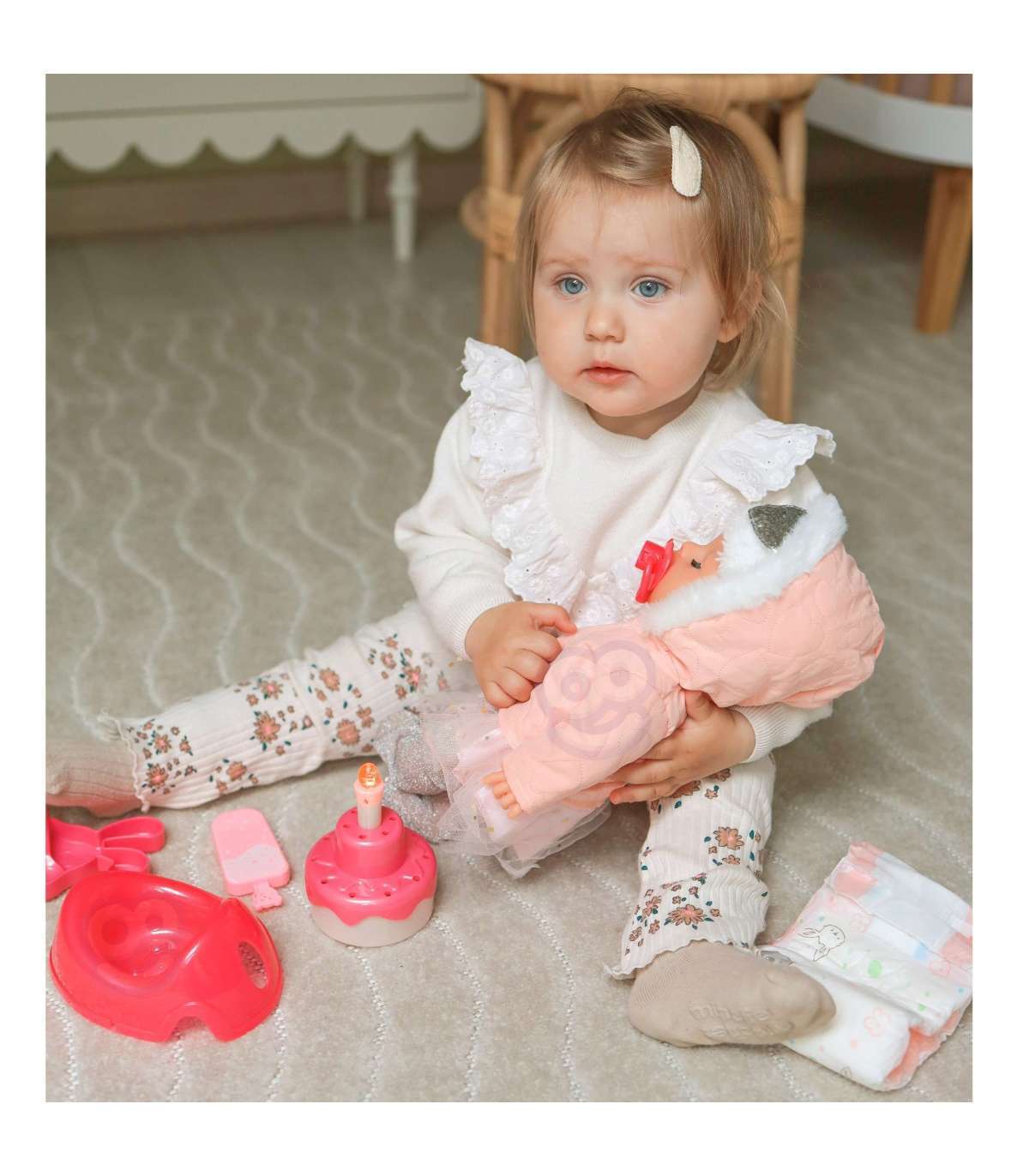 Interaktiivne nukk Väike Zosia peab sünnipäeva brändilt WOOPIE sarjast ROYAL on nagu päris laps. Nuku kõrgus on 35 cm. Ta oskab pudelist juua. Komplektis on kauss, millest saab beebit toita, ning mähkme vahetamiseks mähe. Käed ja jalad on täielikult liikuvad ning nukk suudab seista ja istuda. Nukul on kaasas ka sünnipäevatort, mis tekitab helisid. Nukk on riietatud armsasse riietusse (nukku saab riietada). Laps arendab nukuga mängides empaatiatunnet ja vastutustunnet!