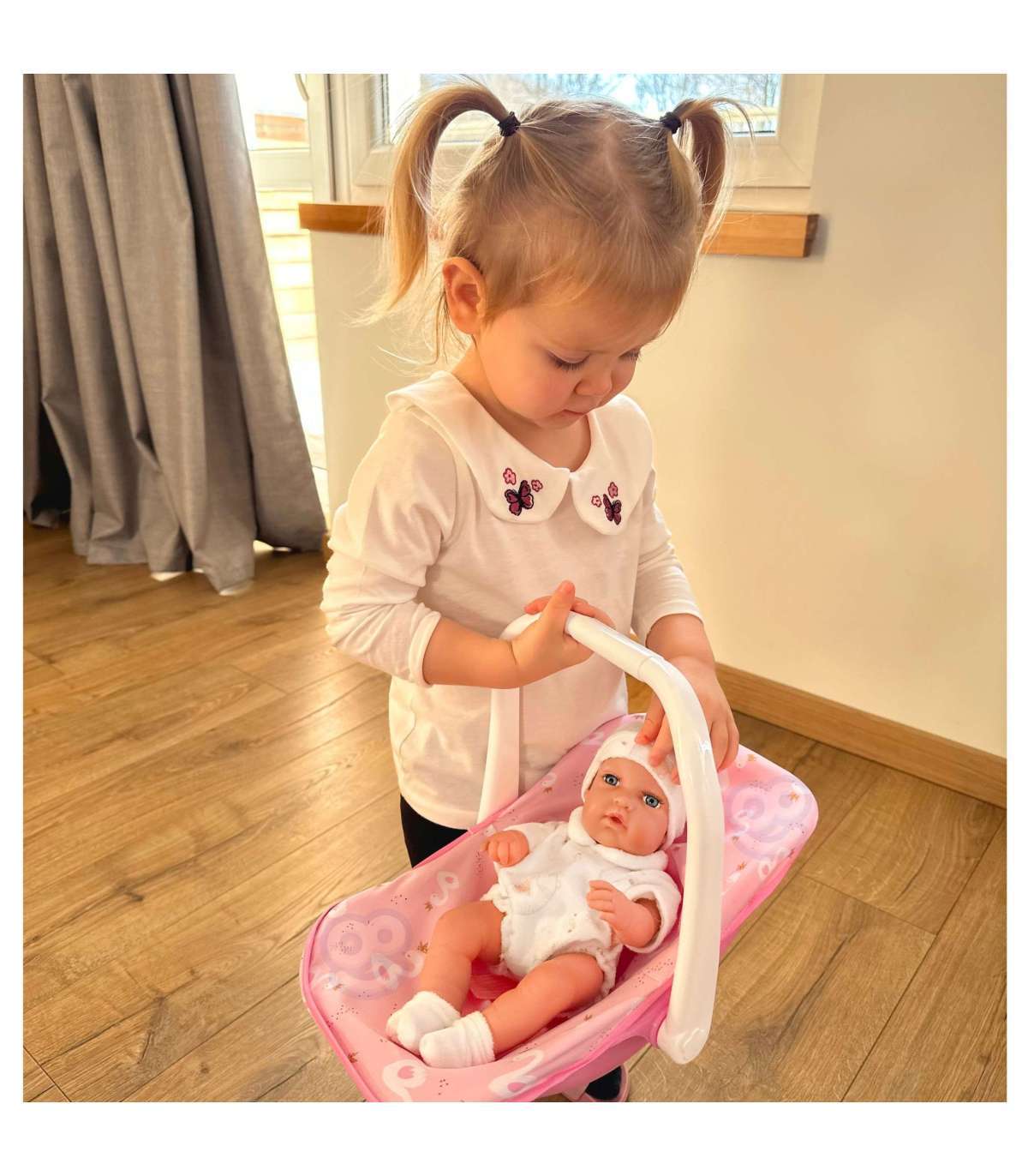 Bobas reisil nukk brändilt WOOPIE ROYAL – sinu uus mängusõber! Nukk on riietatud kaunisse rõivakomplekti, mille juurde kuuluvad sobivad sokid ja müts. Lisaks kuulub komplekti armas kandekott kaunis roosas toonis. Laps arendab loovust rollimängude kaudu. Ta õpib empaatiat, tähelepanelikkust ja isegi vastutust.