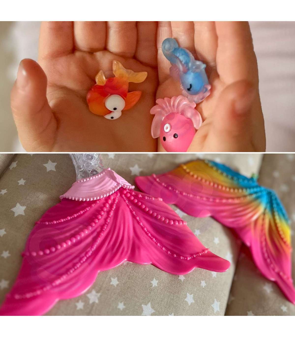 - - Efektowny, ruchomy ogon w kolorach tęczy z różową płetwą