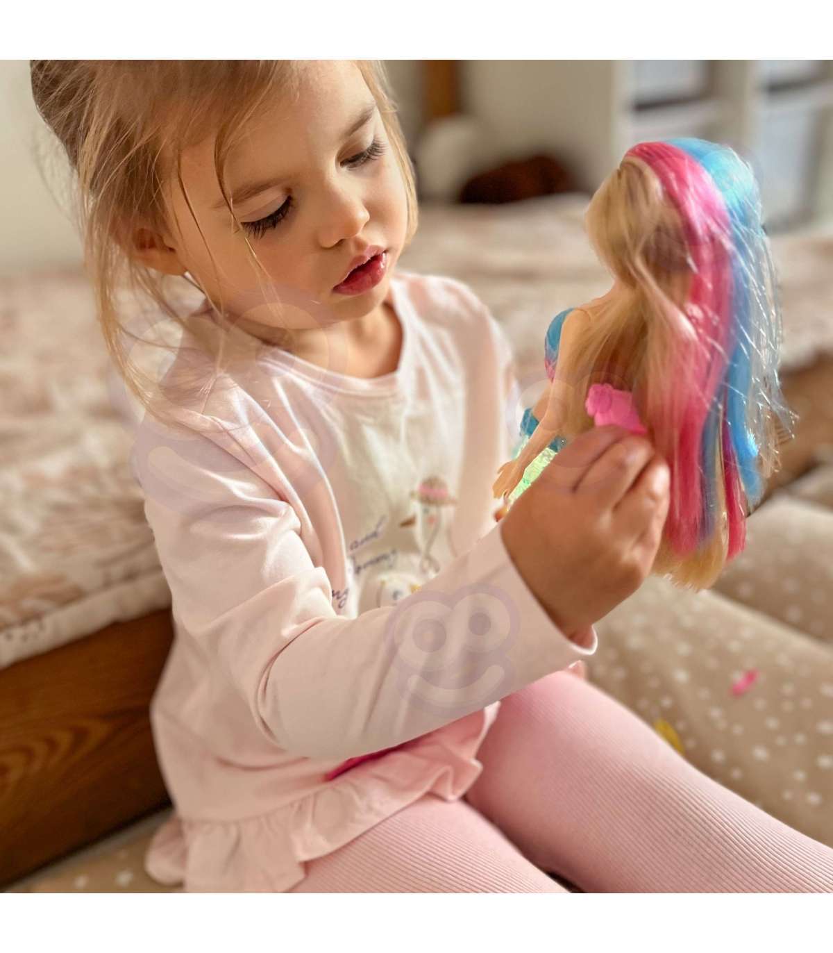 Syrenka Gina od marki WOOPIE to połączenie piękna, magii i kreatywnej zabawy! Lalka świeci i gra, a jej tęczowy ogon i długie blond włosy sprawiają, że wygląda jak bohaterka z bajki. Dzięki licznym akcesoriom do czesania i stylizacji każde dziecko może poczuć się jak prawdziwy stylista fryzur. To idealna zabawka dla małych marzycieli od 3 roku życia, która przeniesie je do podwodnej krainy pełnej fantazji.
