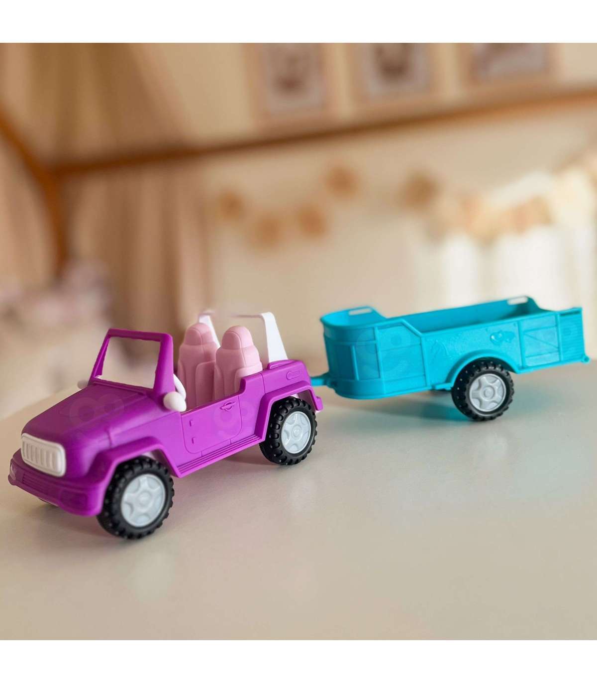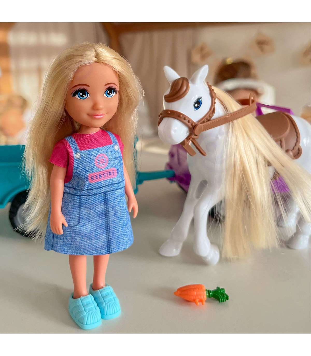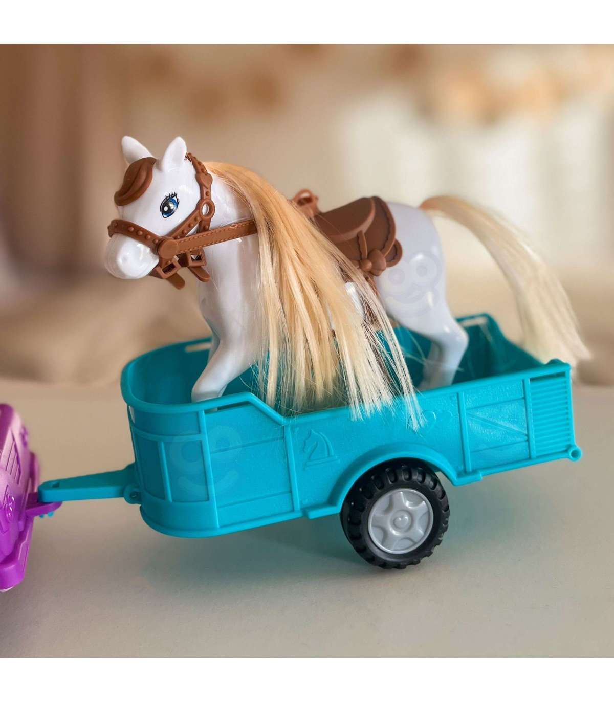 Wyrusz na wiejskie przygody z zestawem Kiki Lalka z Koniem, Samochodem i Przyczepą od marki Woopie! Ten obszerny zestaw do odgrywania ról z motywem ranczo/farmy zawiera mini lalkę, która potrafi usiąść za kierownicą fioletowego pojazdu terenowego. Doczep do niego turkusową przyczepę, aby przewieźć swojego konia! Lalka ma długie, blond włosy, które można czesać, a koń posiada siodło i uzdę. To idealna zabawka, która rozwija wyobraźnię i kreatywność oraz pozwala na tworzenie nieskończonej ilości scenariuszy związanych z życiem na farmie. Zestaw przeznaczony jest dla dzieci od 3 roku życia.