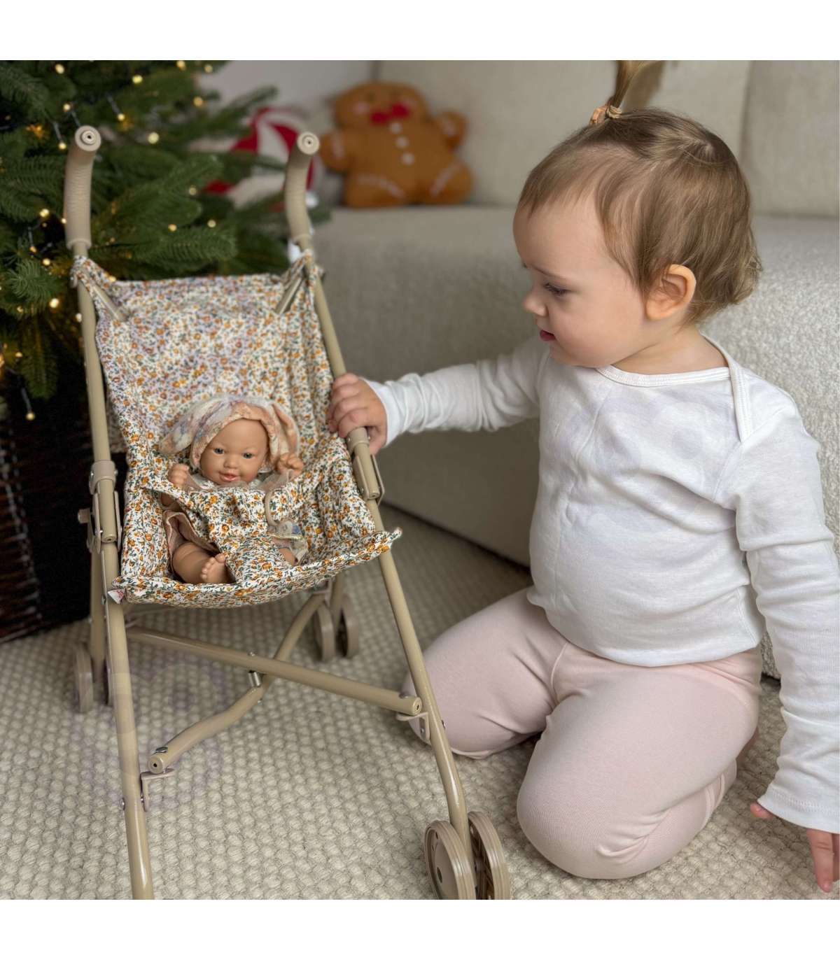 Wózek spacerówka dla lalek z kwiecistym wzorem od marki Woopie to idealna zabawka dla każdej dziewczynki, która uwielbia bawić się w dom i opiekować swoimi ulubionymi laleczkami lub pluszakami. Dzięki lekkiej, składanej konstrukcji jest łatwy do przenoszenia i świetnie sprawdzi się zarówno w domu, jak i podczas spacerów na świeżym powietrzu. Wygodne uchwyty dopasowane do dziecięcych dłoni oraz podwójne kółka zapewniają komfort jazdy. Stylowa tapicerka w kremowym kolorze z uroczym wzorem w kwiatki dodaje mu wyjątkowego charakteru. To wspaniała propozycja na prezent, który rozwija wyobraźnię, empatię i zdolności manualne dziecka.