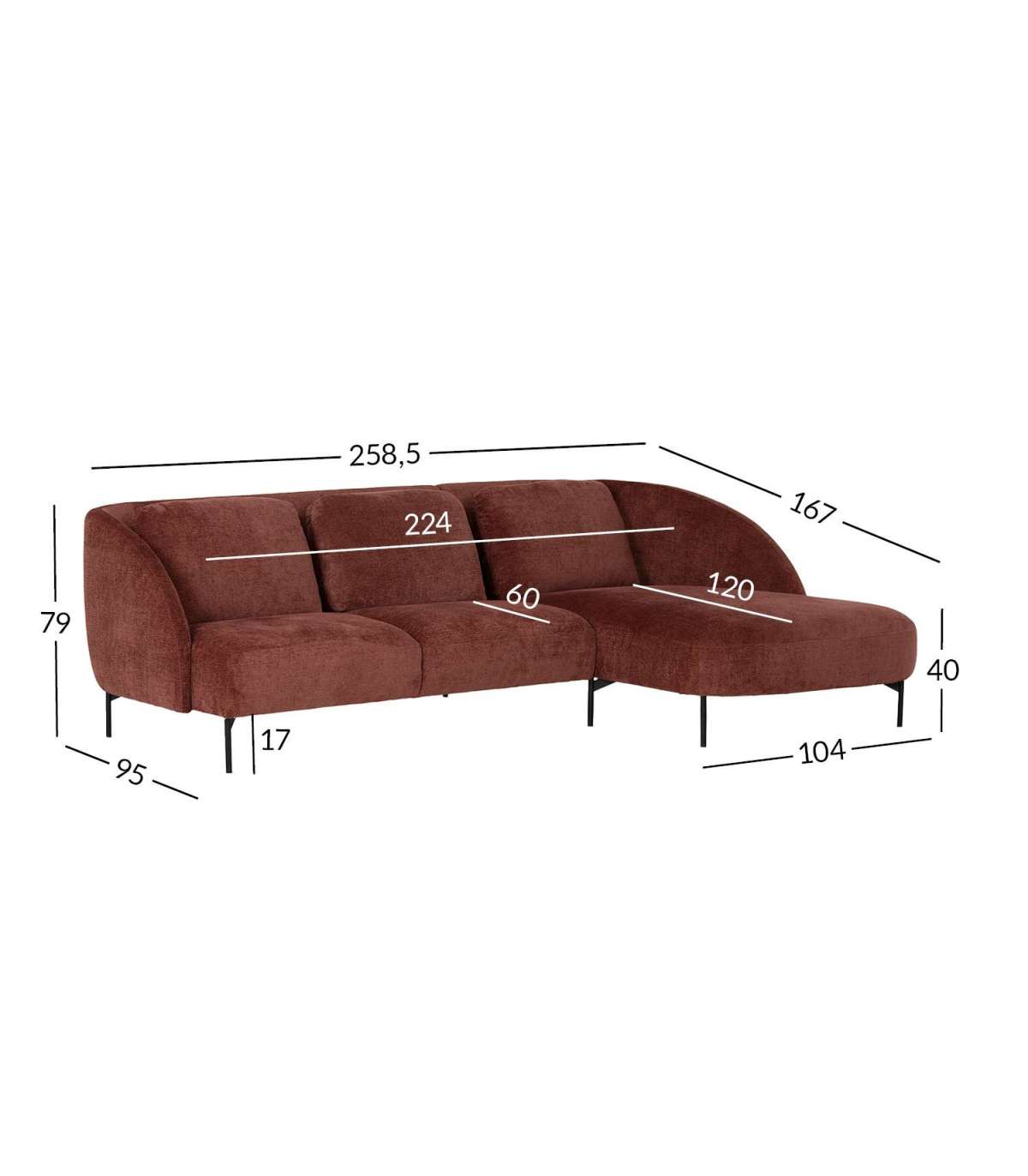 Nurgadiivan ASHLEY PN 258,5x167xH79cm, bordoo