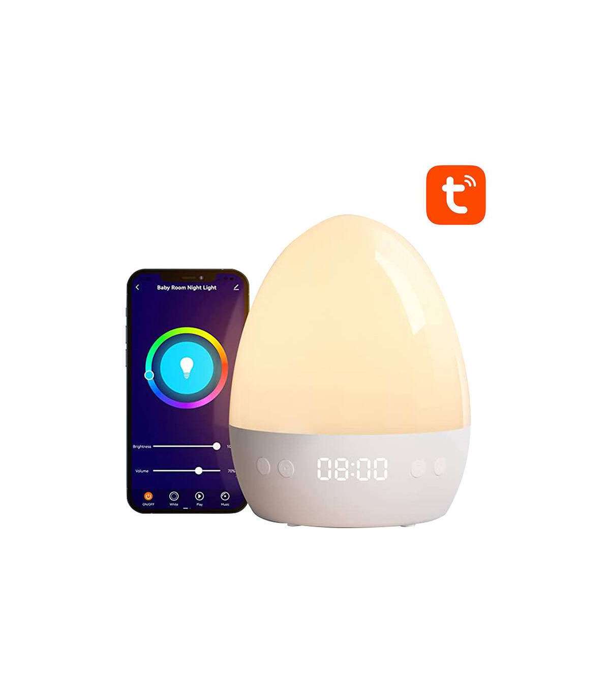 The LB2S bedside lamp is the perfect solution for any bedroom, whether small or large. It has a compact size and a charming, interesting design that will fit perfectly into a bedroom or a child's room. You can use the app to change its color and brightness, as well as program its operation. The lamp is compatible with Google Assistant and Amazon Alexa and operates on the 2.4GHz Wi-Fi band.