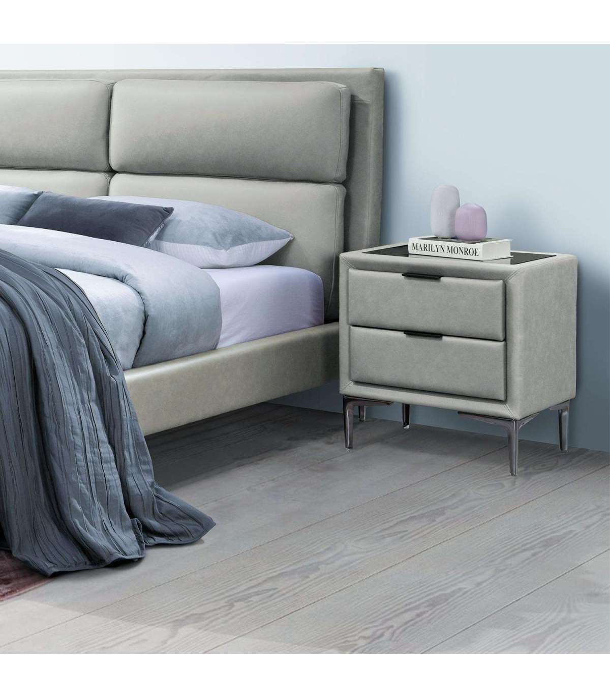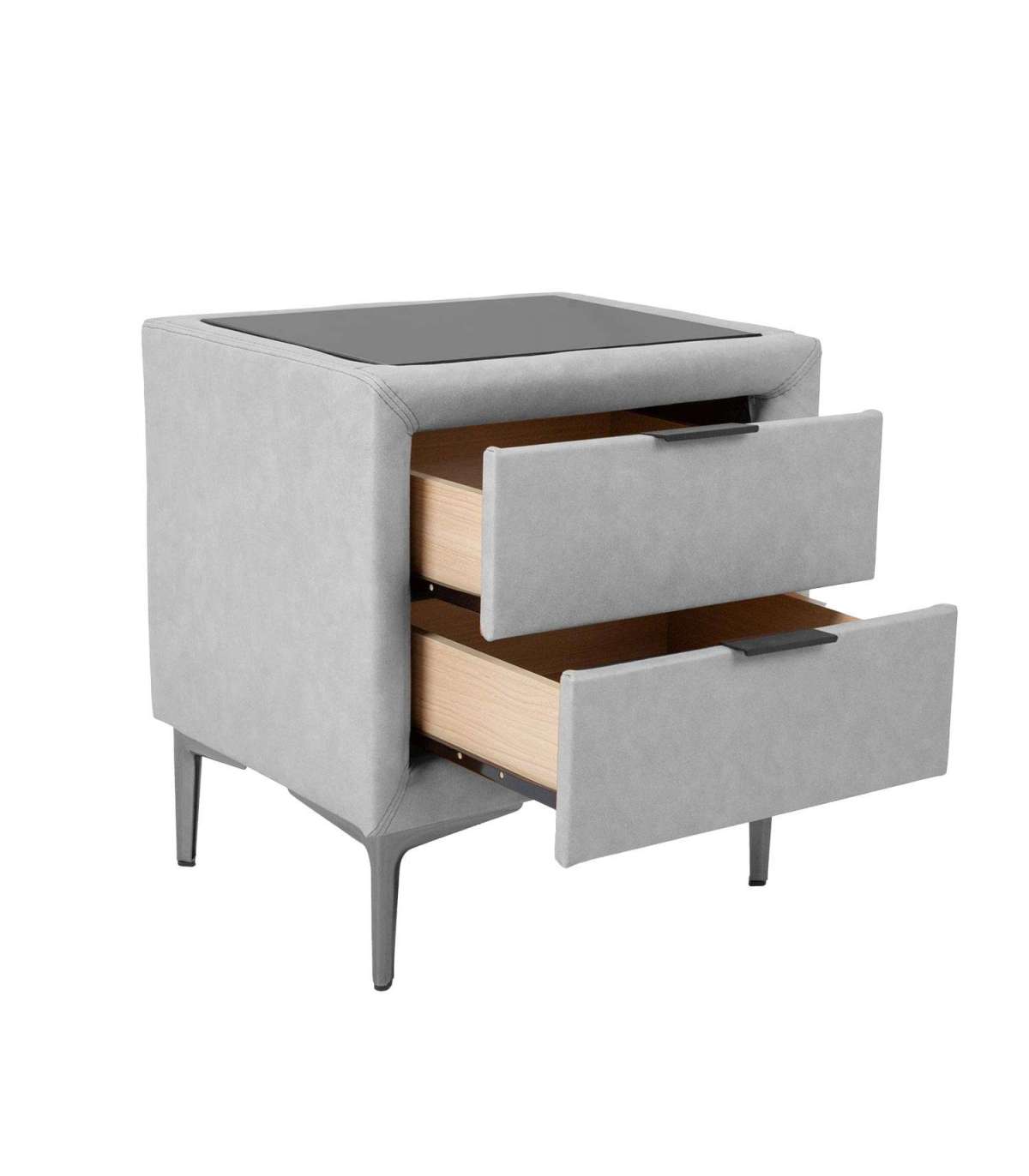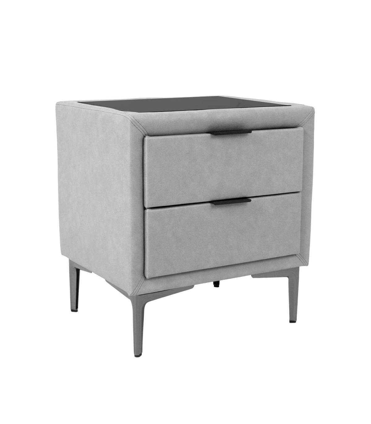 Öökapp LENA 2-sahtliga 50,5x41xH54cm, bee˛. Öökapi korpus on valmistatud mööbliplaadist ja kaetud uudse kunstnahka meenutava materjaliga (Leathaire), mis ühendab endas naha kauni tekstuuri ning kanga soojuse. Leathaire on ideaalne mööblikattematerjal, sest on hästi hingav, vett hülgav, kriimustuste kindel ning väga vastupidav. Öökapi peal on tume karastatud klaasist plaat. Öökapil on tumedad metallist jalad ja sahtlite käepidemed.