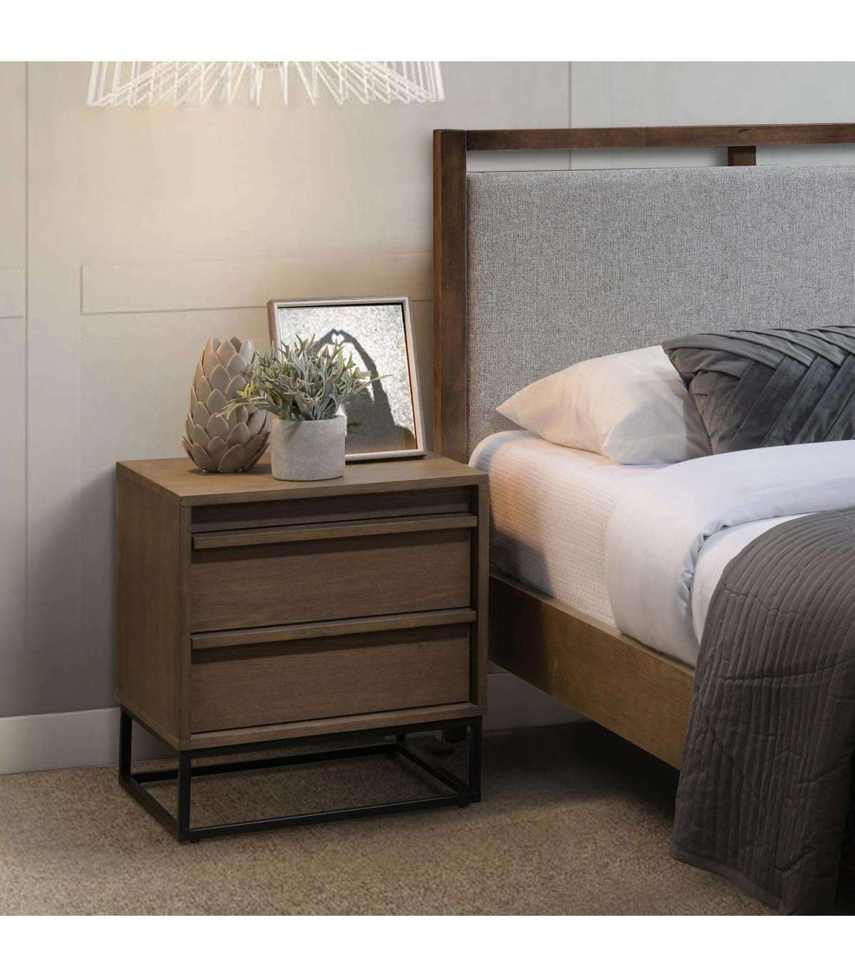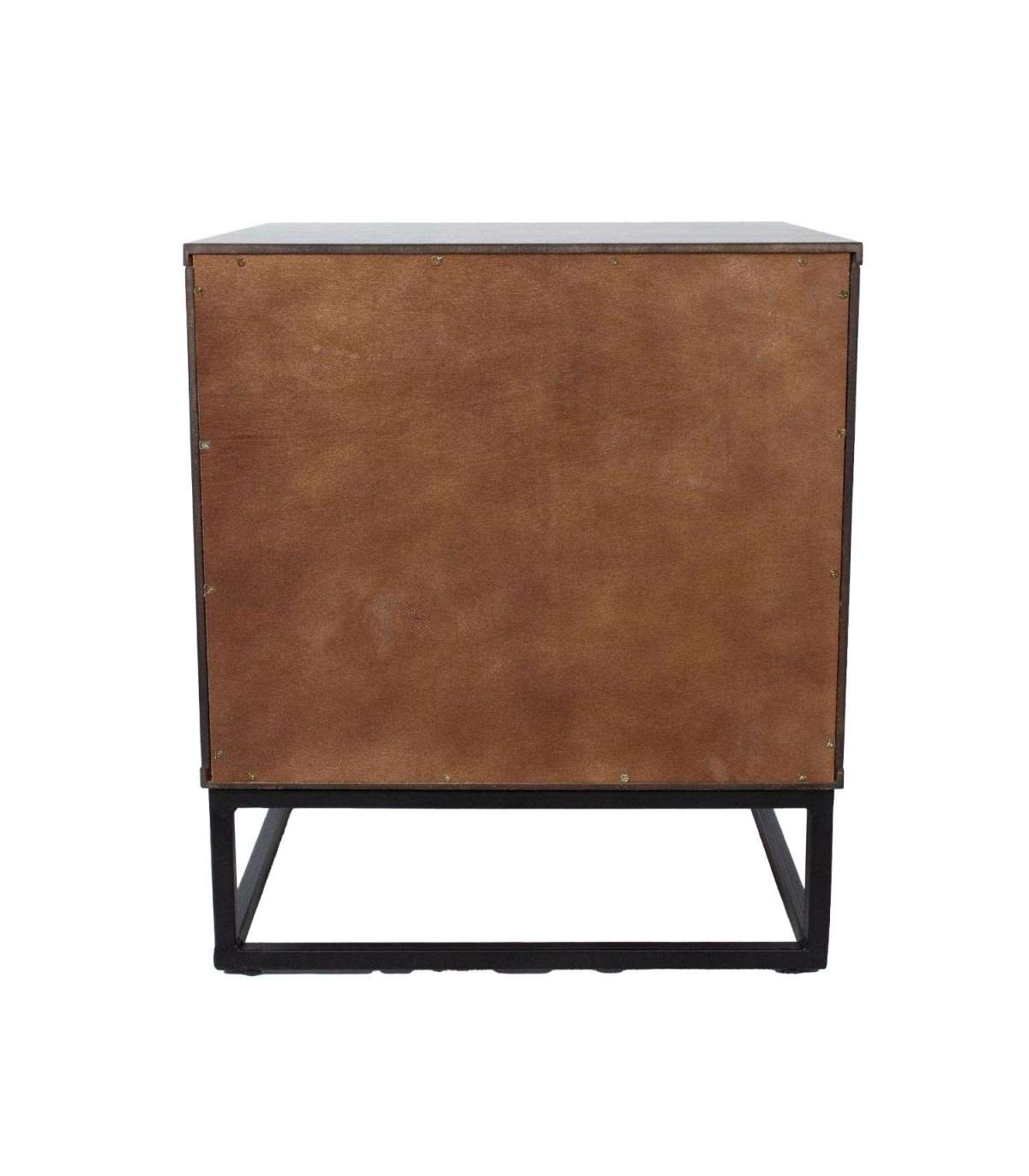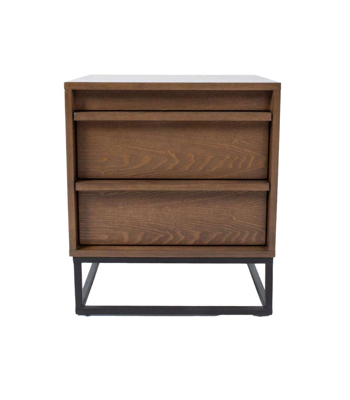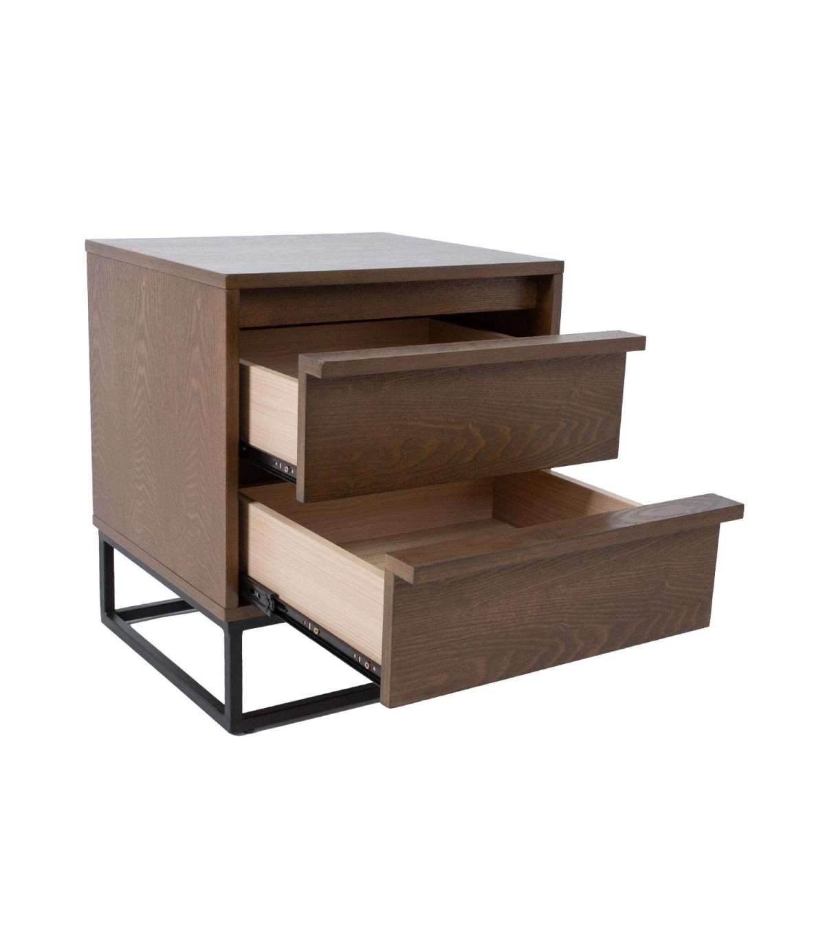Öökapp VOKSI 2 sahtliga 40x45xH52cm, pähkel. Mööbliplaadist valmistatud öökapp on naturaalse saarespooniga ja viimistletud tumeda pähklitoonis lakiga. Öökapi metallist alusraam on viimistletud musta pulbervärviga.