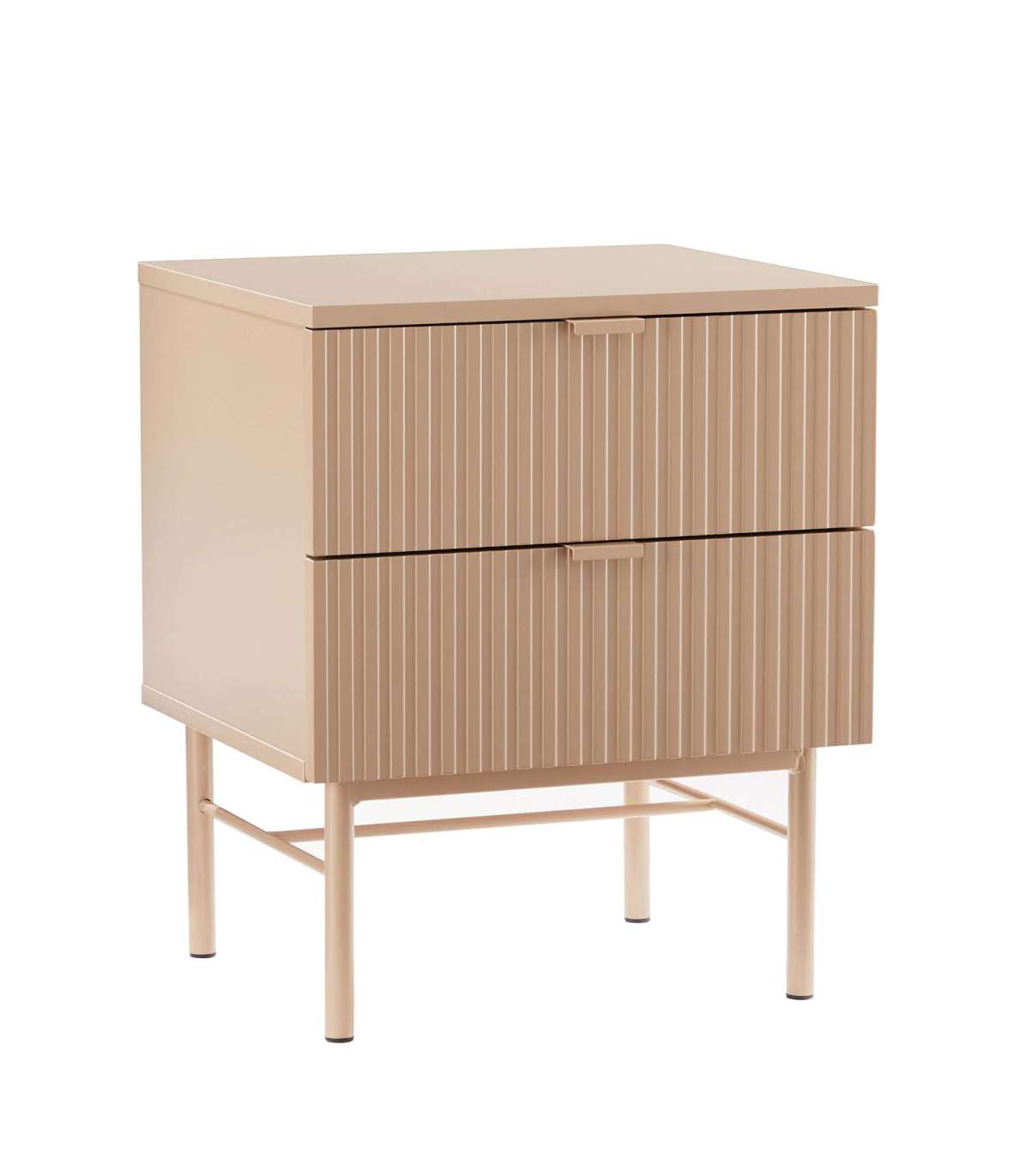 Öökapp SEQUENCE 2-sahtliga 45x40xH55cm, cappuccino. Öökapi korpus on valmistatud MDF plaadist. Reljeefse pinnaga triibulised sahtli esipaneelid annavad kapile omanäolise ja trendika välimuse. Sahtlid liiguvad metallsiinidel. Öökapp on viimistletud vastupidava polüuretaanvärviga. Metallist alusraam ja jalad on viimistletud pulbervärviga.