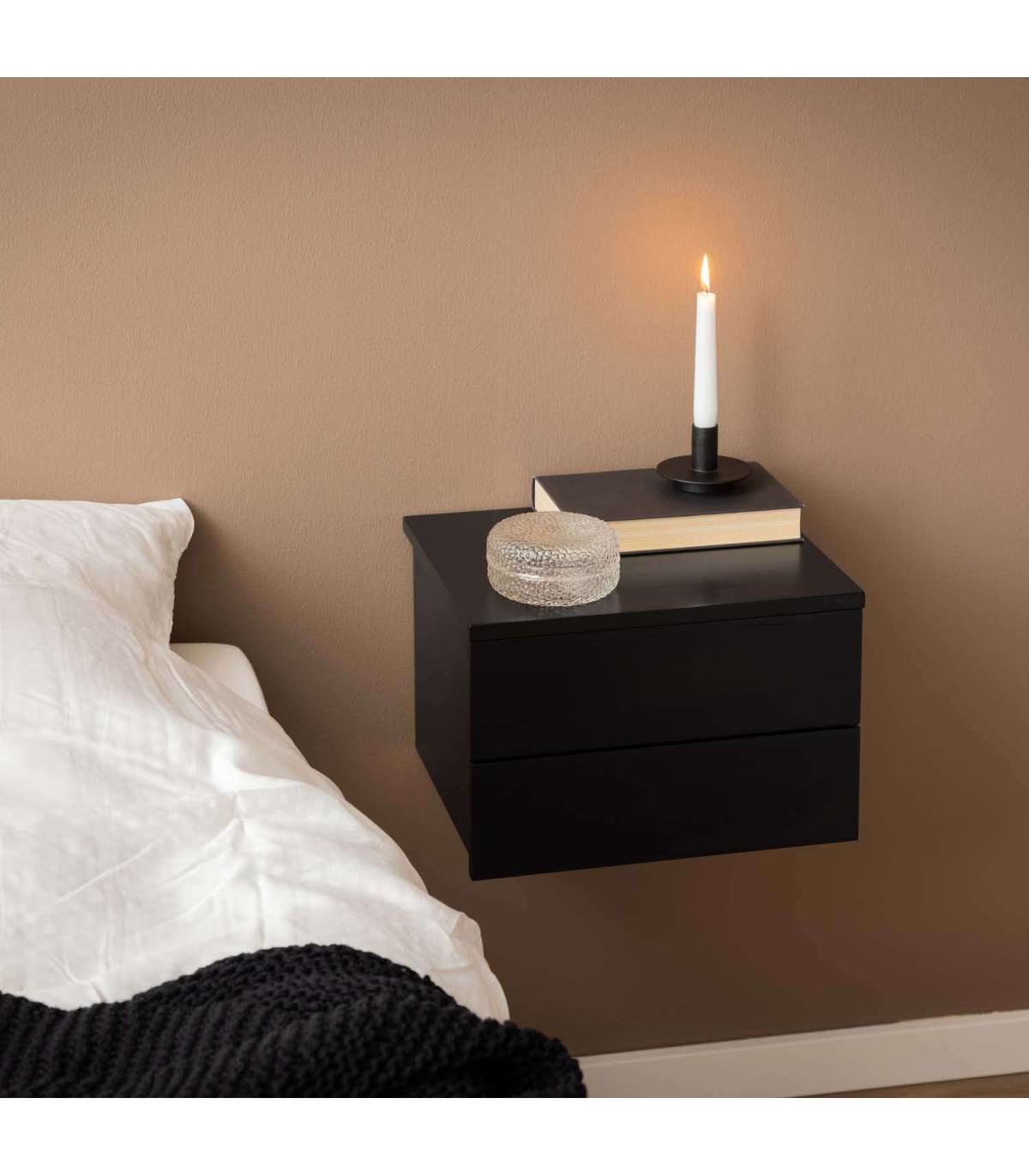 Minimalistliku välimusega öökapp. Puhaste joonte ja musta värvi pinnaga öökapp annab magamistoale kena ilme. Kappi on lihtne voodi kõrvale soovitud kõrgusele paigaldada. Kaks sahtlit pakuvad ruumi kõigele, mis on käeulatuses vajalik. Mõõdud on 37x32xH24,6cm. HOOLDUS: Üldiselt vajavad värvitud pinnad vähe hooldust. Kõik plekid tuleb koheselt eemaldada seebiveest kuivaks väänatud lapiga.