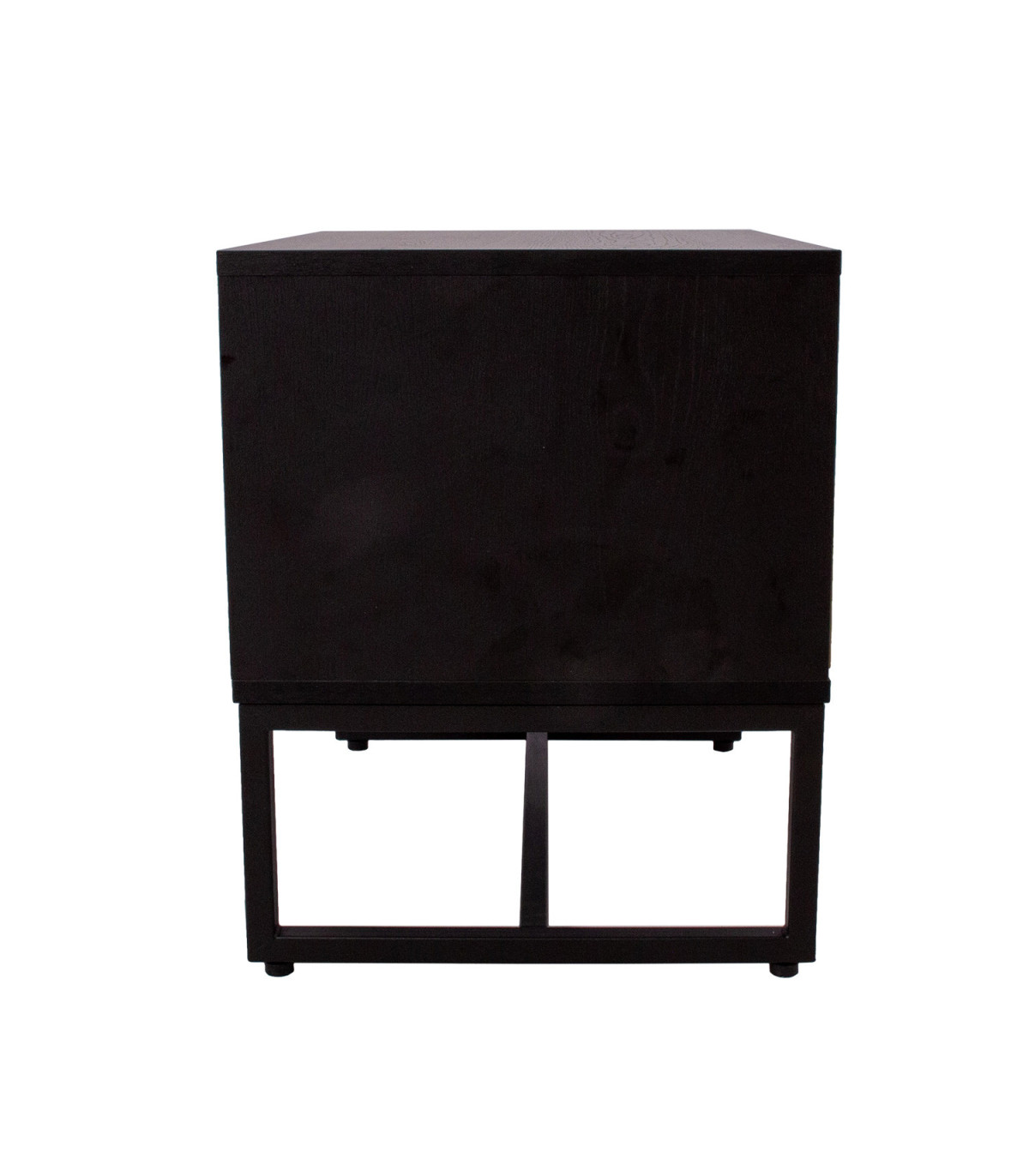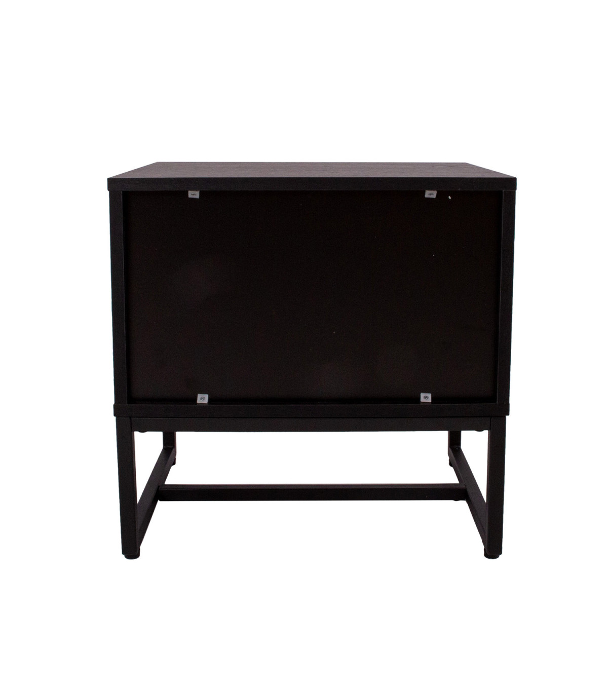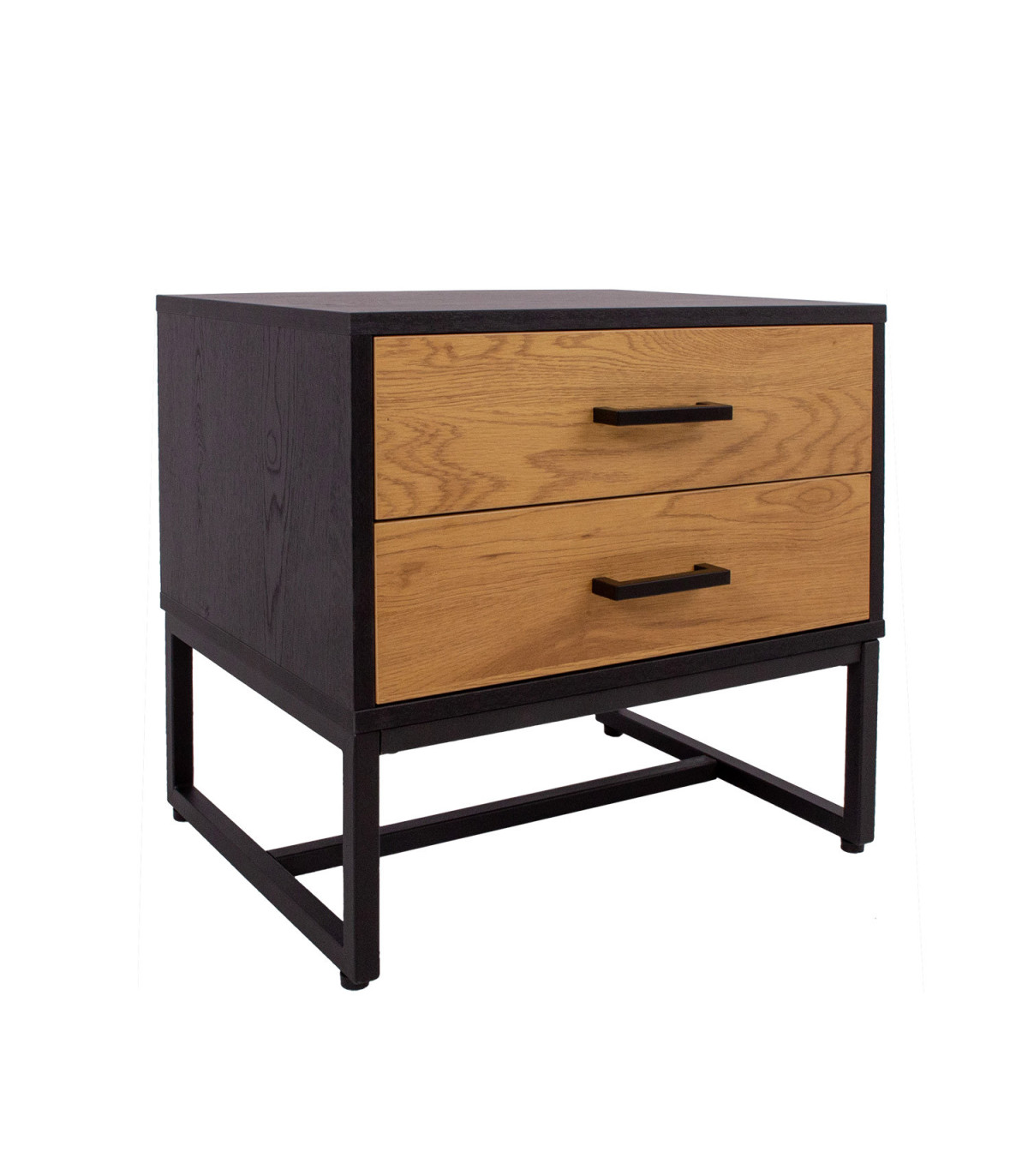 Öökapp AMSTERDAM 50x40xH50cm. Materjal: melamiinplaat, värvus: tamm/must. Must metallist alusraam. Vaikselt sulguvad sahtlisiinid. Mustad alumiiniumust käepidemed.