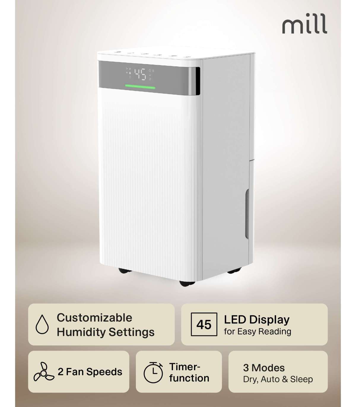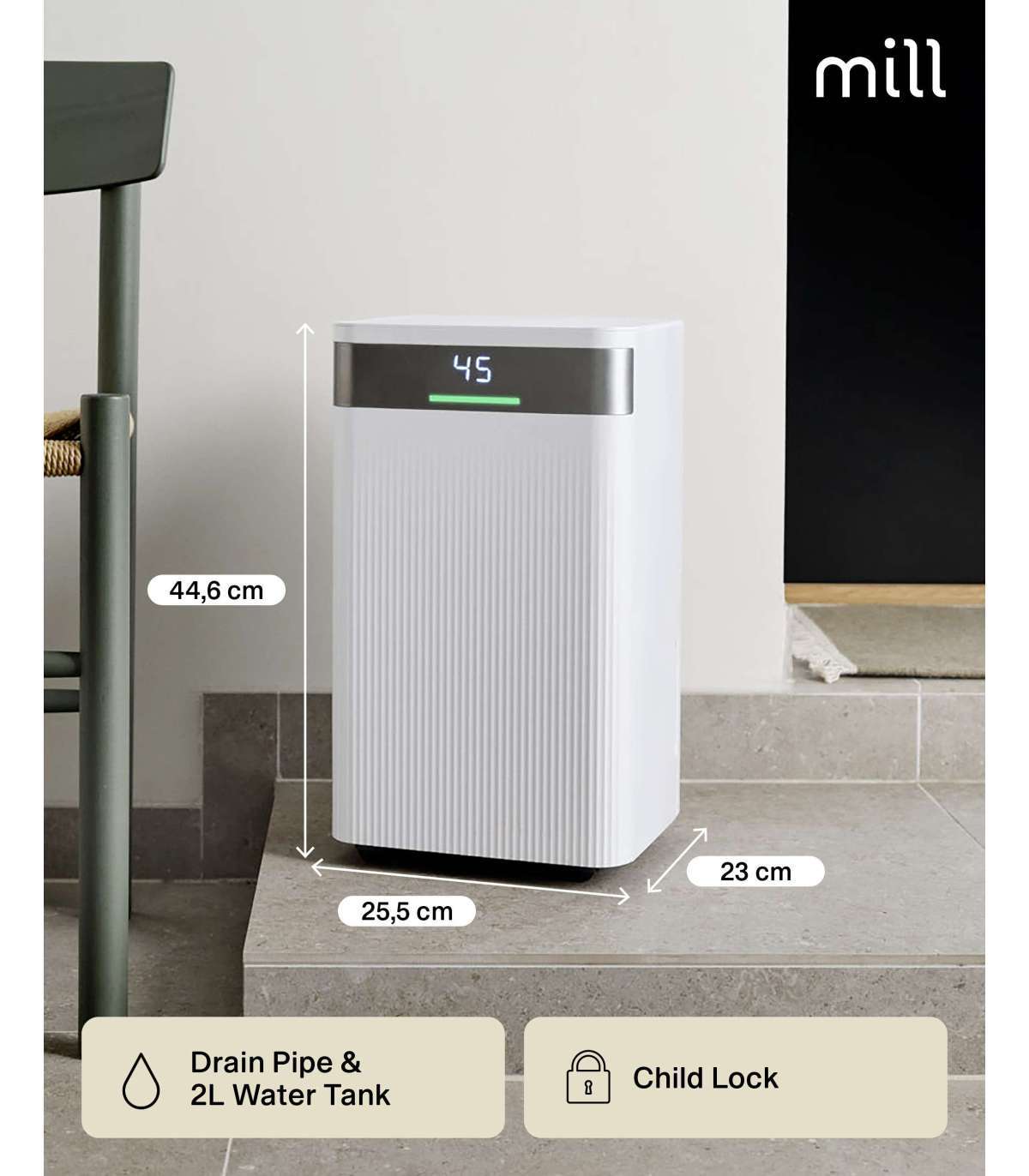 Mill Dehumidifier | MDH12 | Power 200 W | Suitable for rooms up to 8-15 m² | Water tank capacity 2 L | White