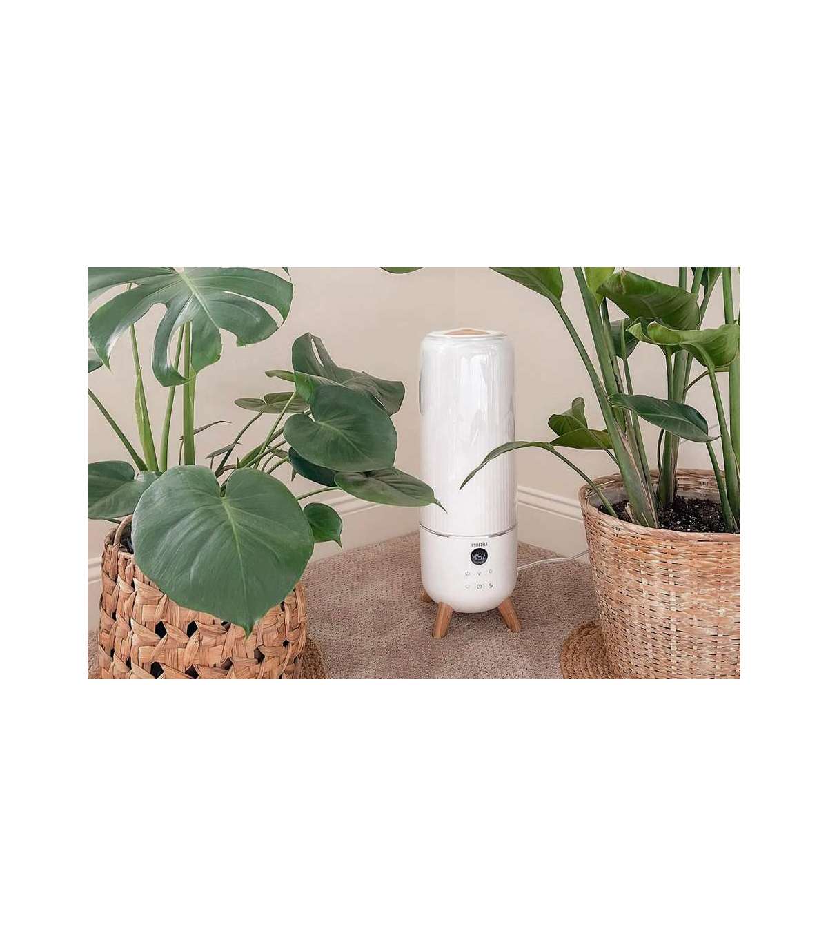 Nähtav jahe udu: Ultrahelitehnoloogia muudab vee peeneks uduks, mis hajub ühtlaselt õhku; lisab ideaalse koguse niiskust igasse suurde magamistuppa või peretuppa kuni 130 ruutmeetrit.