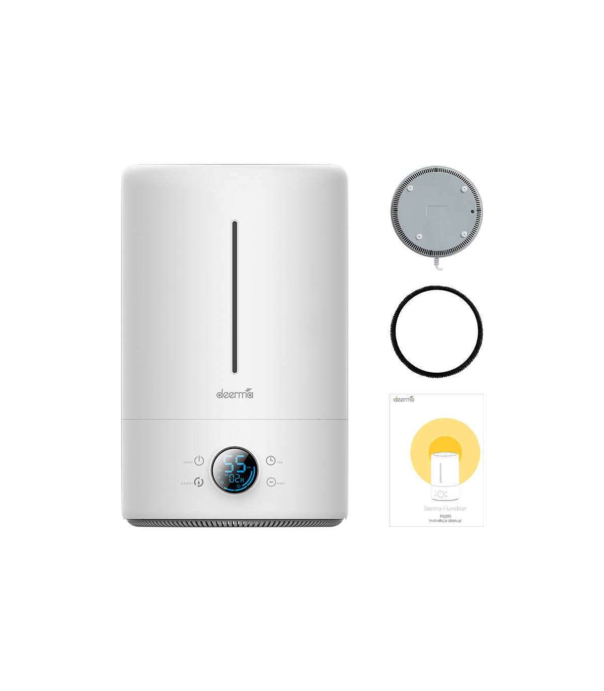 The user-friendly interface makes operating the Deerma F628S humidifier simple and pleasant. The device has a built-in hygrometer, thanks to which the digital display will indicate the level of air humidification. In addition, you can check the room temperature with just a glance. With the help of a few intuitive buttons, you will also set the optimal mode of the device for your lifestyle. Deerma F628S will allow you to easily and conveniently ensure comfortable and health-friendly room humidification levels in your home.
