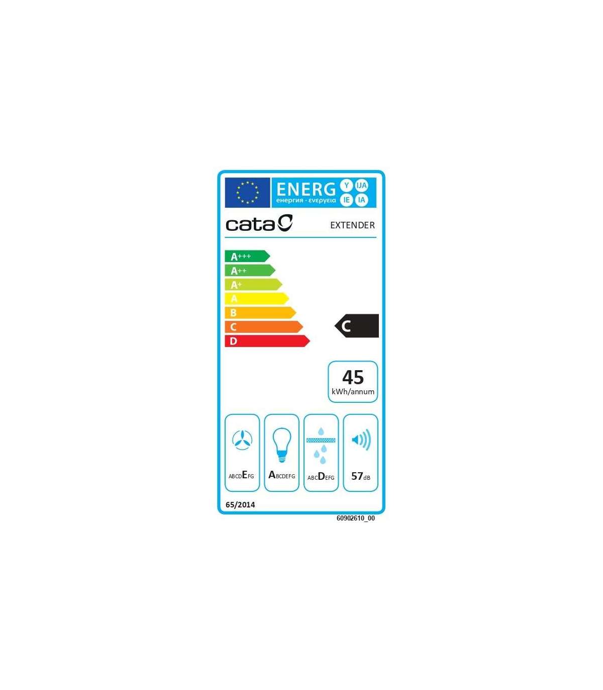 CATA Hood EXTENDER 600 Telescopic Energy efficiency class C Width 60 cm 390 m³/h Mechanical ECOLED |