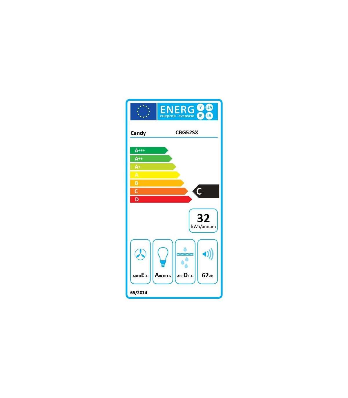 Candy Hood | CBG52SX | Canopy | Energy efficiency class C | Width 52 cm | 168 m³/h | Mechanical | LED | Silver