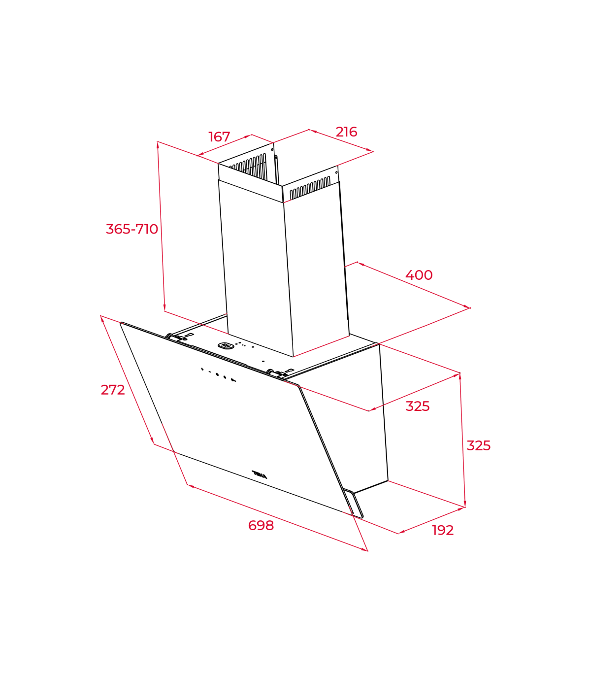 Teka vertikaalne, 70 cm laiune seinale paigaldatav mudel on elegantne ja modernse klaasist disainiga.