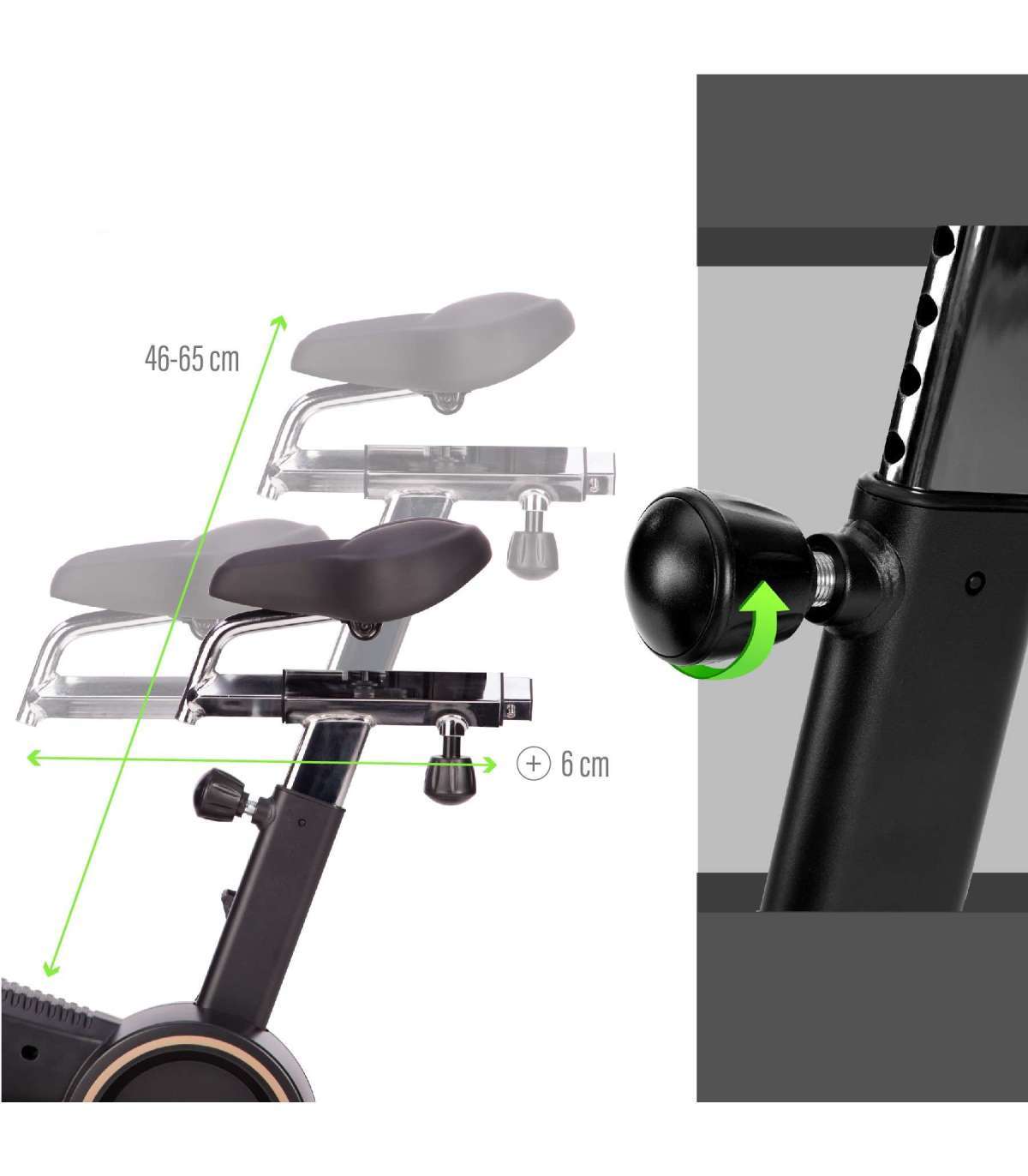MP5458 võimaldab sadulat reguleerida vastavalt teie pikkusele ja eelistustele. Sadulat saab käsitsi reguleerida vertikaalselt ja horisontaalselt, et leida optimaalne asend. Sadul on mugav ja ergonoomiline ning kaetud kunstnahaga vastupidavuse ja lihtsa puhastamise tagamiseks.