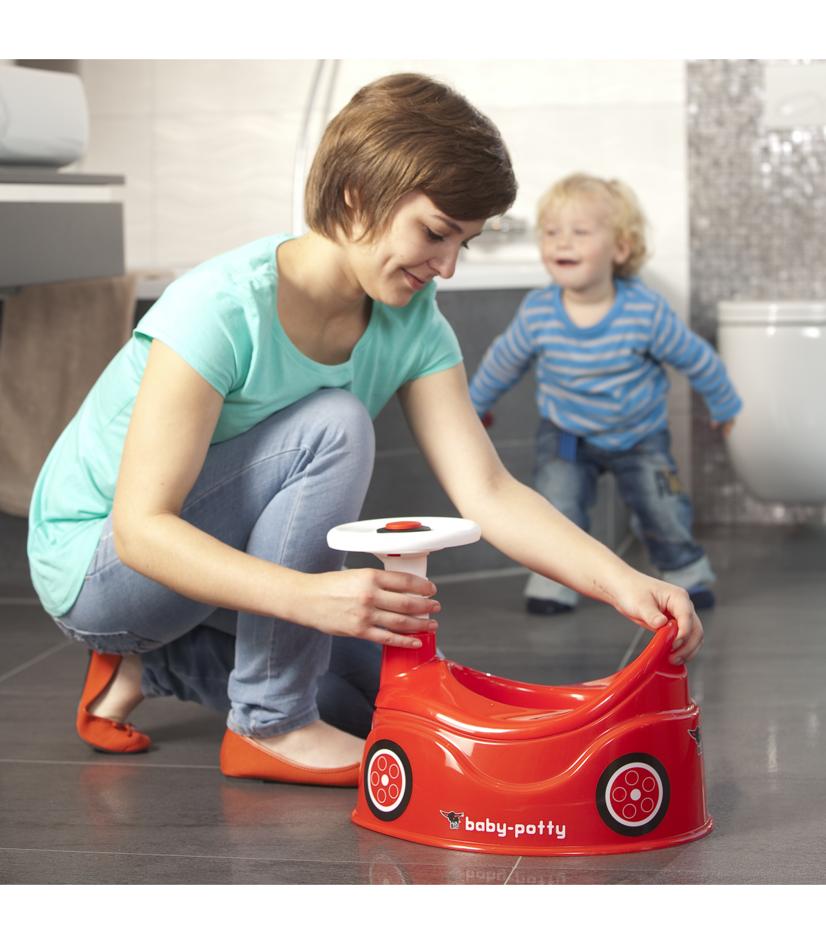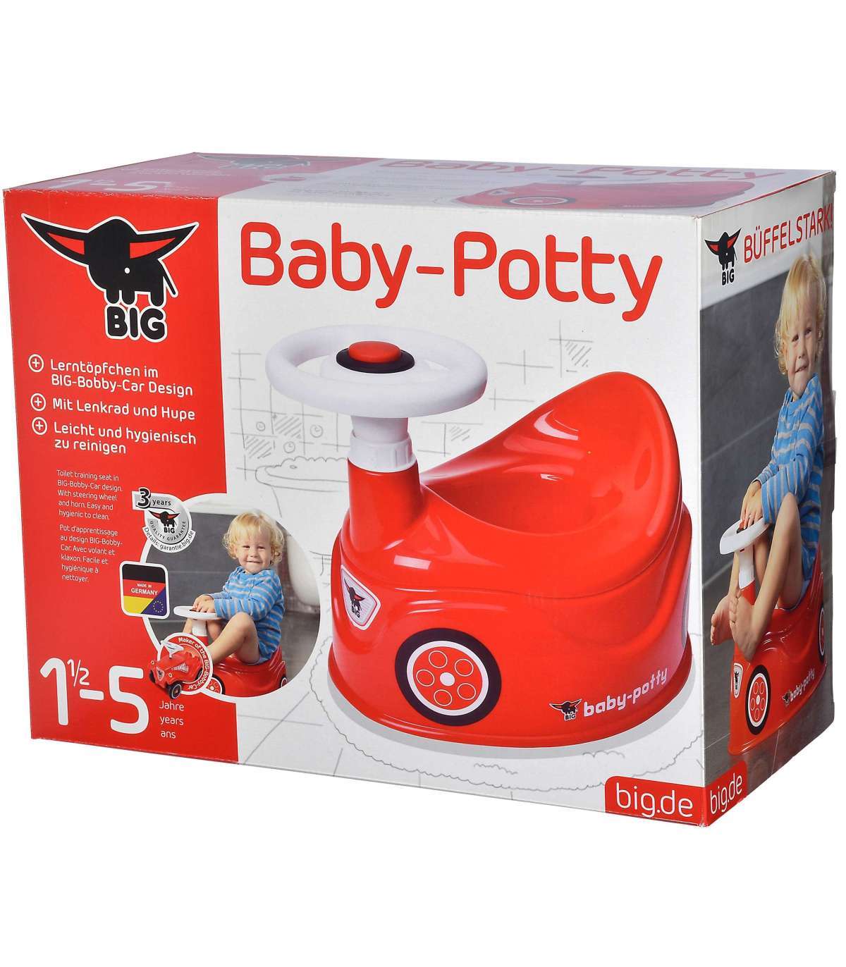 - - nocniczek jest wierną kopią popularnego BIG New Bobby Car i zapewnia maksymalny komfort siedzenia dzięki zintegrowanej ochronie przed pryskaniem,