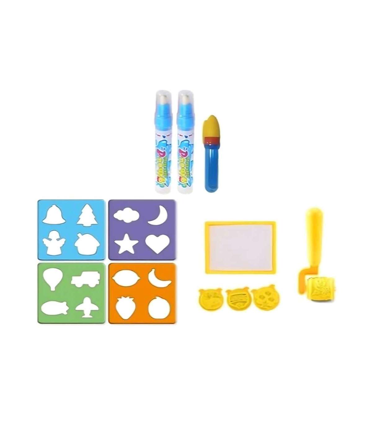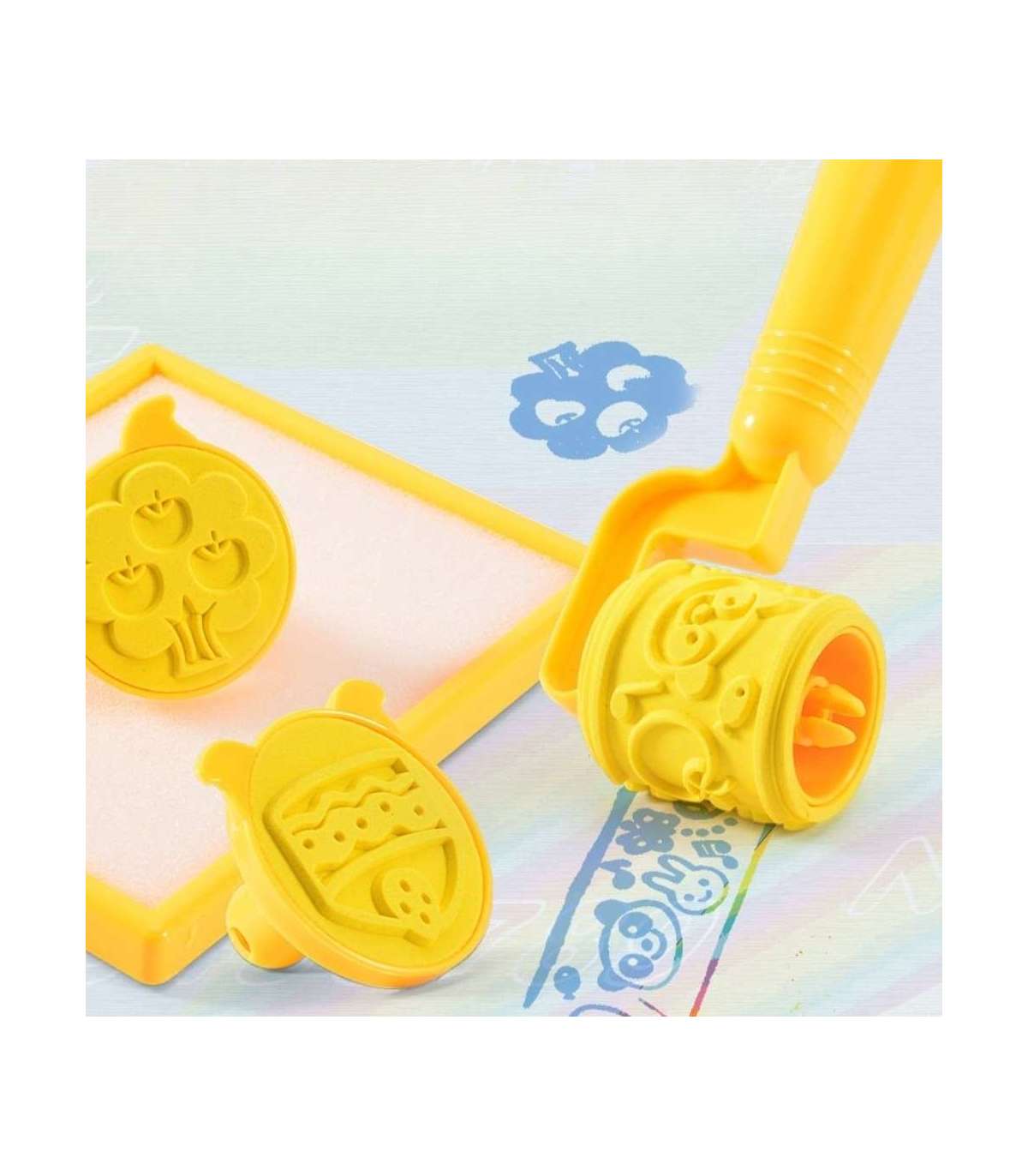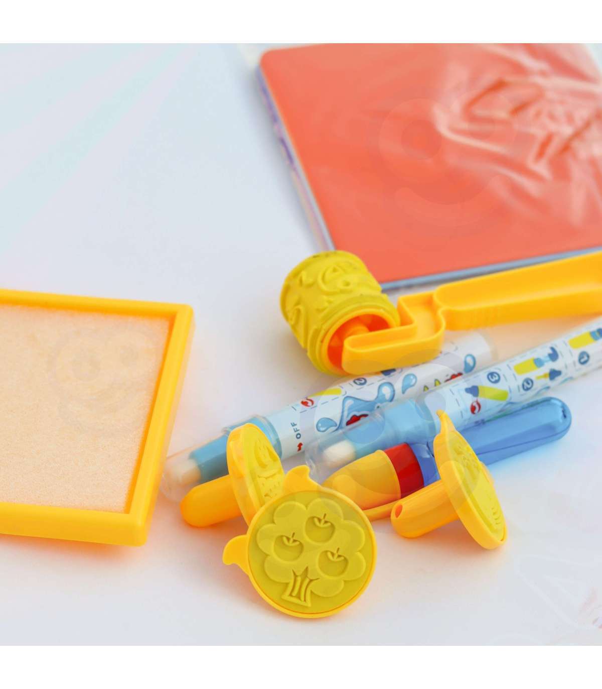 Zestaw zawiera szablony i stempelki, które urozmaicają zabawę i pozwalają tworzyć jeszcze ciekawsze wzory -