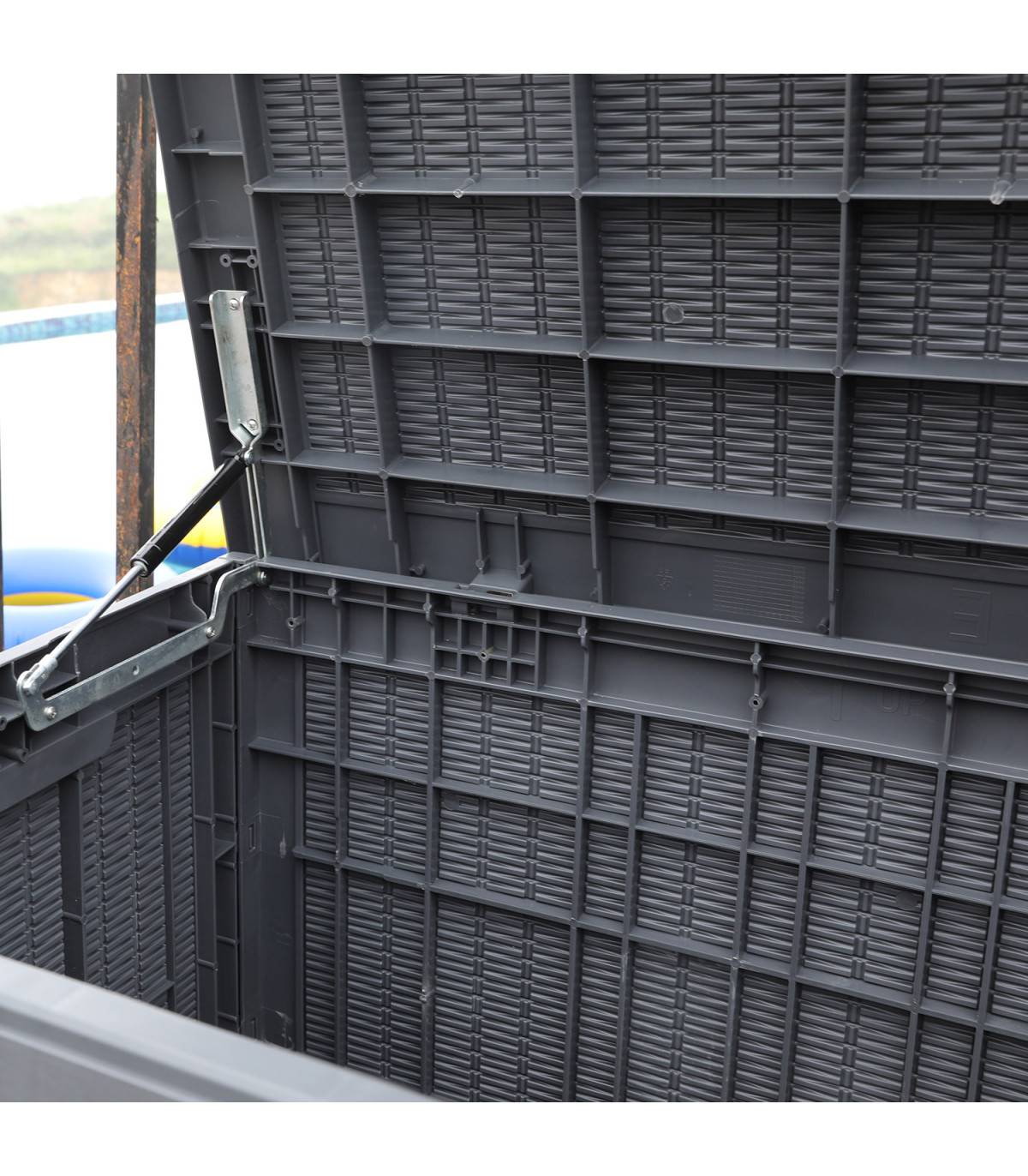 Tugev ja mahukas plastikkast on hea lahendus aias vajaminevate asjade või suvemööbli patjade hoiustamiseks. Kast on ilmastikukindel ja vastupidav UV-kiirgusele. Säilituskast on lukustatav.
