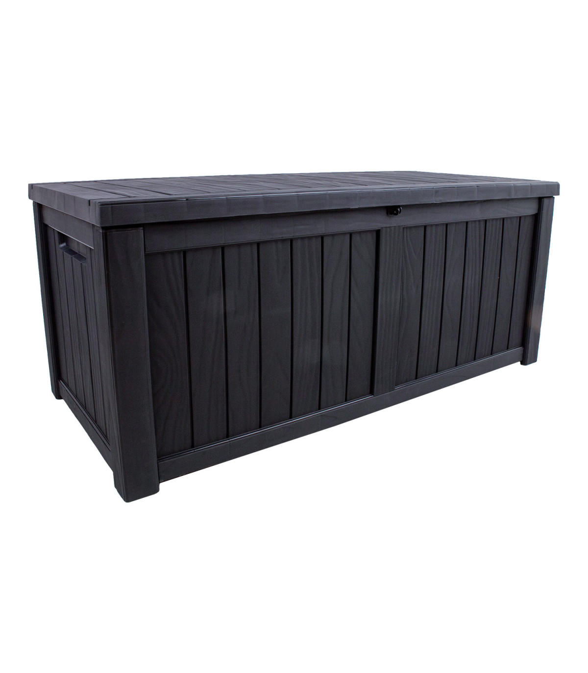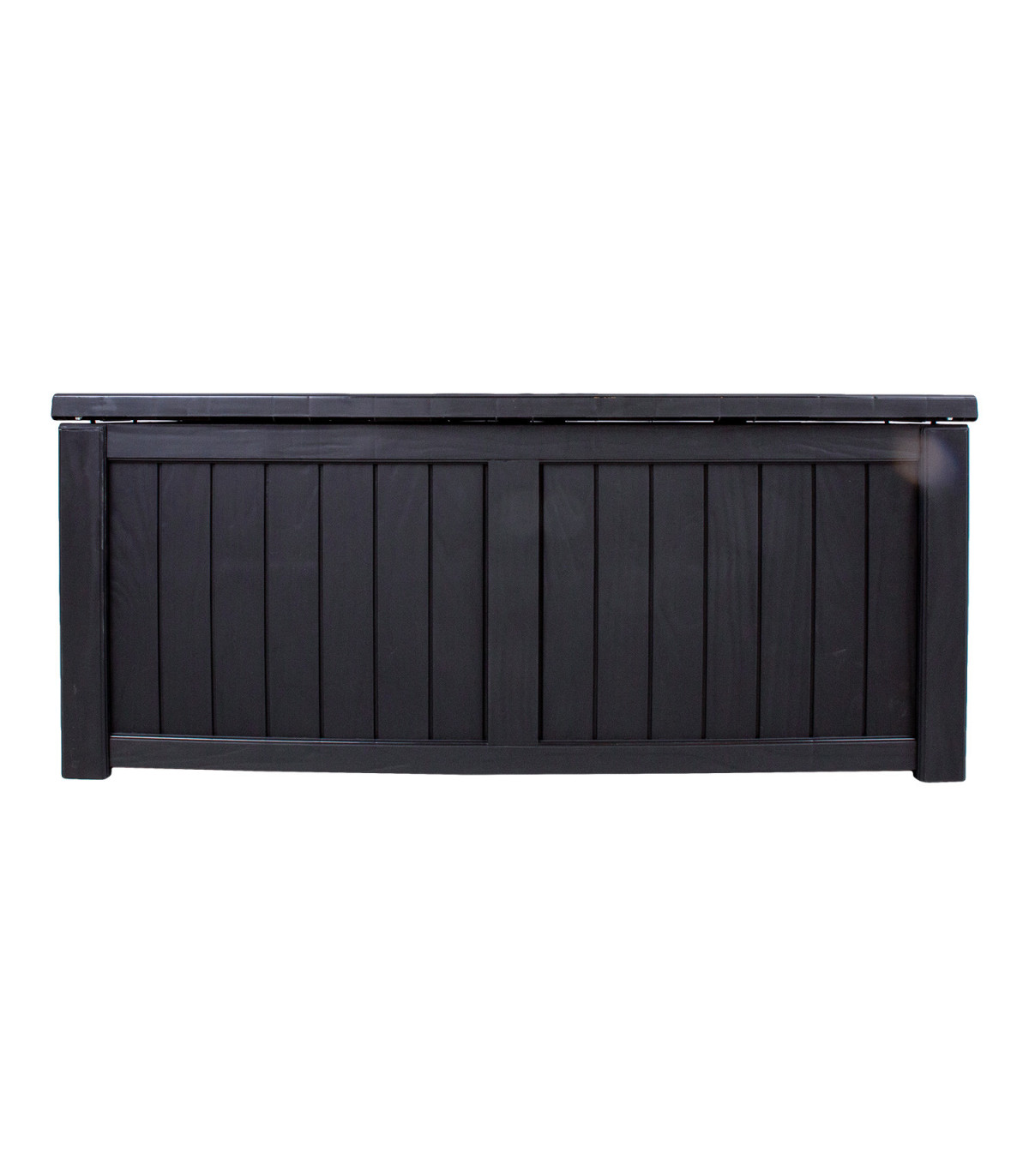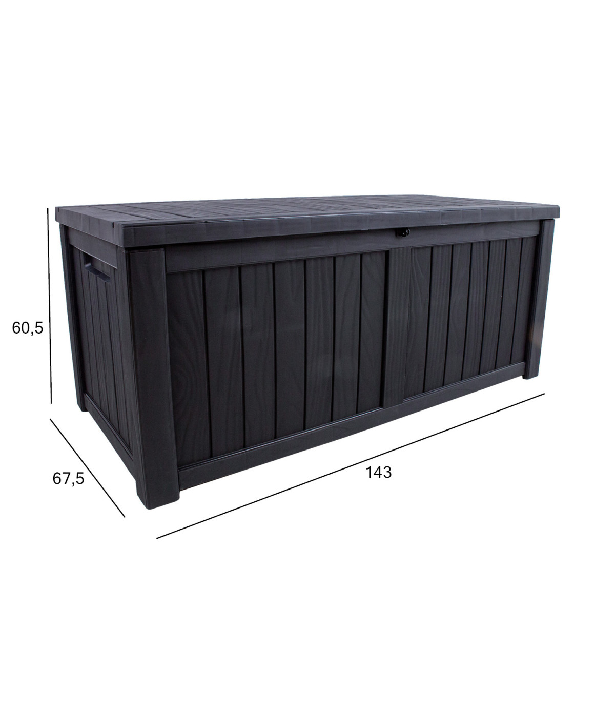 Säilituskast PRAIA 143x67,5x60,5cm/450L, must puidu imitatsiooniga plastik.