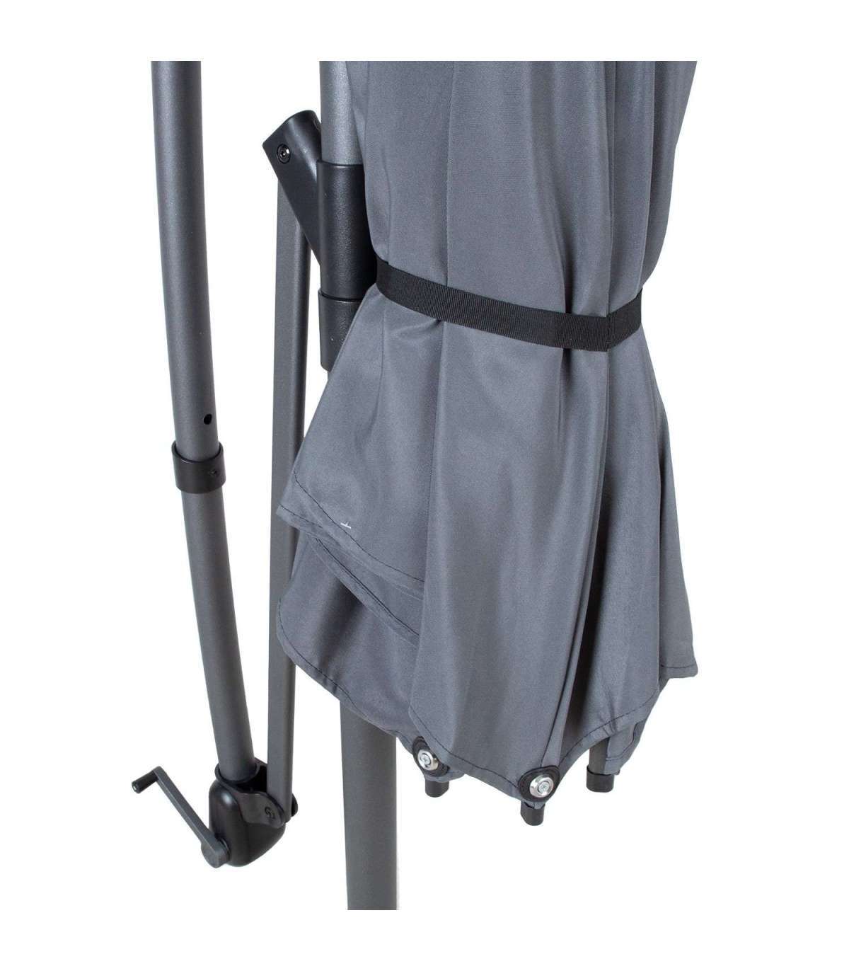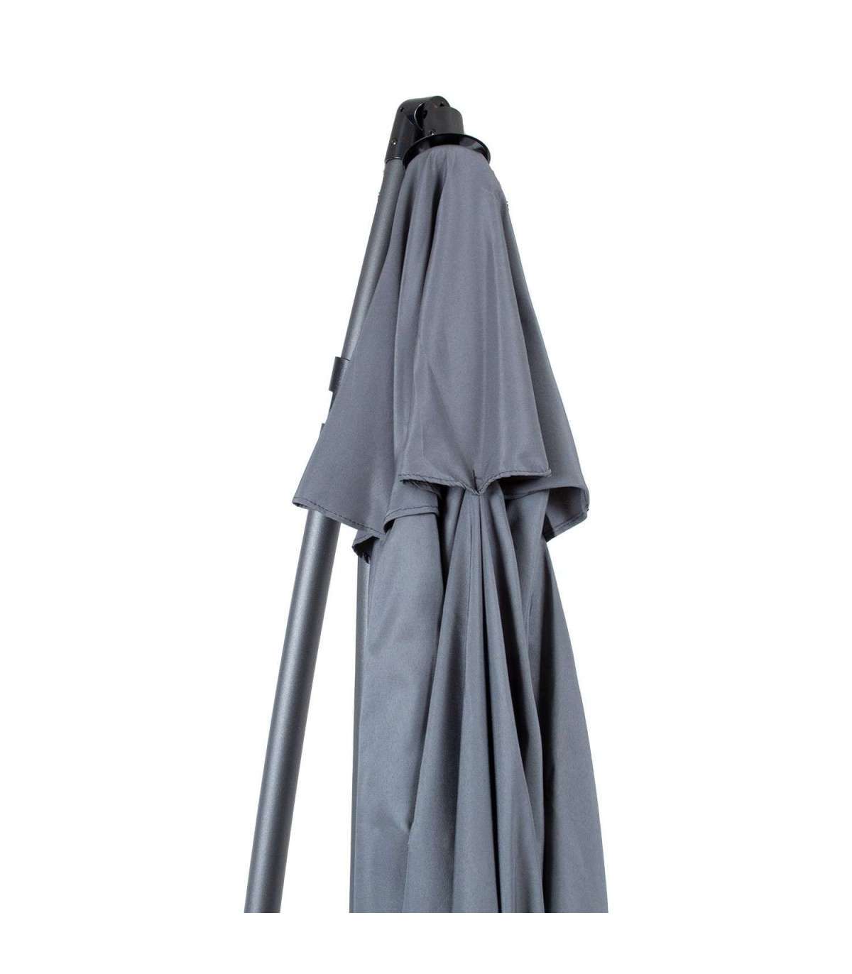 Päikesevari MALTA D3m, hall. Päikesevarju kate on valmistatud polüesterkangagast 180g/m². Päikesevarjul on tugev ja stabiilne terasest jalg, mis on viimistletud halli pulbervärviga. Jala torude mõõdud on D45,5x8mm/D48x0,8mm, painutatud toru mõõt on D38x1mm. 8 terasribi 12x18x0,42mm. Päikesevari on vändaga avatav ja pöörleb 360°. Komplekti kuulub metallist alusrist ilma lisaraskuseta. Lisaraskuseks soovitame juurde päikesevarjualuse kive koodiga 25188. HOIATUS: toode ei ole mõeldud kasutamiseks tugeva tuule või vihma korral. Ärge jätke avatud päikesevarju järelevalveta. HOOLDUS: hoiustage kuivas, hea ventilatsiooniga ruumis. Enne päikesevarju hoiule panemist laske sel täielikult kuivada.