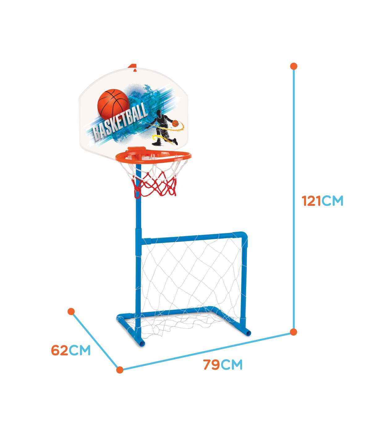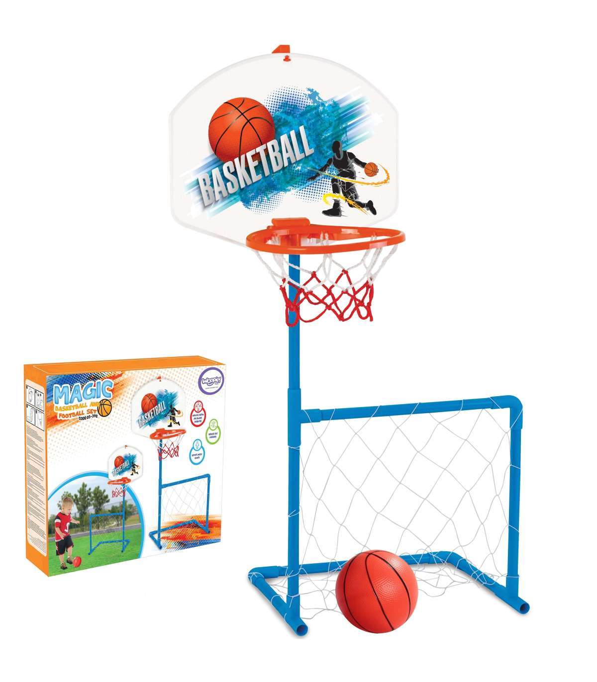 WOOPIE 2-ühes komplekt: korvpallikorv ja jalgpalli värav + pall