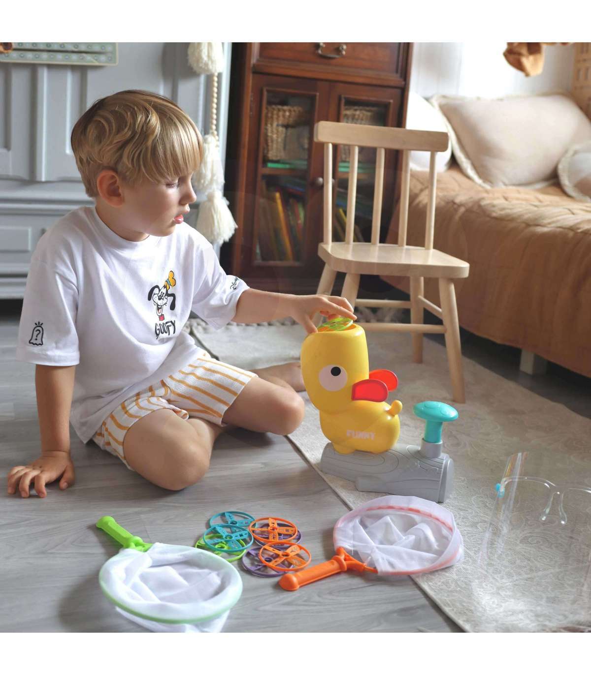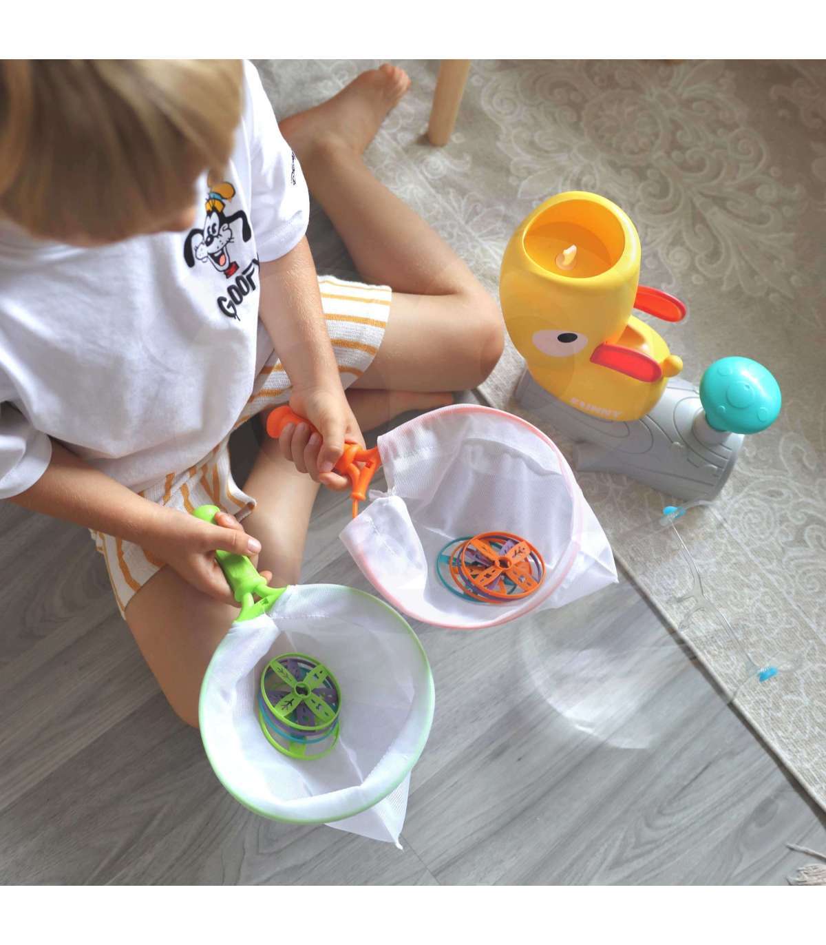 Osavusmäng Püüa frisbeed Pardakatapult margilt WOOPIE on ideaalne pakkumine ühisteks mängudeks kogu perele! See mäng põhineb osavusel, keskendumisel ja heal motoorsel koordineerimisel. Mängijate ülesanne on püüda pardalt visatud ketas. Mida tugevamalt nuppu vajutad, seda kõrgemale ketas lendab. See muudab mängu veelgi põnevamaks. Toode sobib nii lastele kui ka täiskasvanutele. Mänguasi on ohutu ja sisaldab kaitseprille, mis kaitsevad mängu ajal silmi ja nägu.