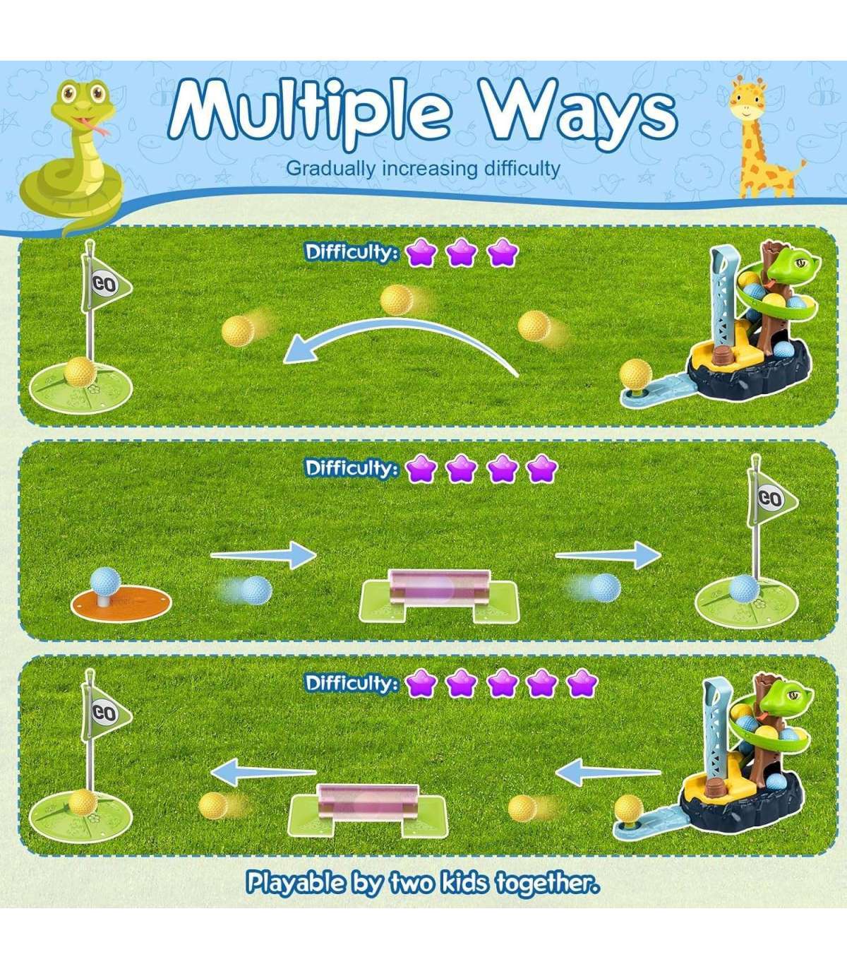Snake Golf osavusmäng brändilt WOOPIE on põnev mini-golfi mängukomplekt lastele. Komplekt sisaldab erinevaid elemente, näiteks golfikepid, pallid, auk lipuga ja takistused. Mäng seisneb selles, et laps laseb palli tornist, mis libiseb rajal stardikohta; seejärel peab laps palli lööma nii, et see takistusi vältides maandub auku. Mänguasi arendab peenmotoorikat, loogilist mõtlemist ning parandab lapse keskendumisvõimet. Lisaks suurele lõbule võib mini-golf äratada lapse huvi ja õpetada talle golfi põhitõdesid. Mitmekesised mängurežiimid tagavad tunde mööduvaid mänguhetki.