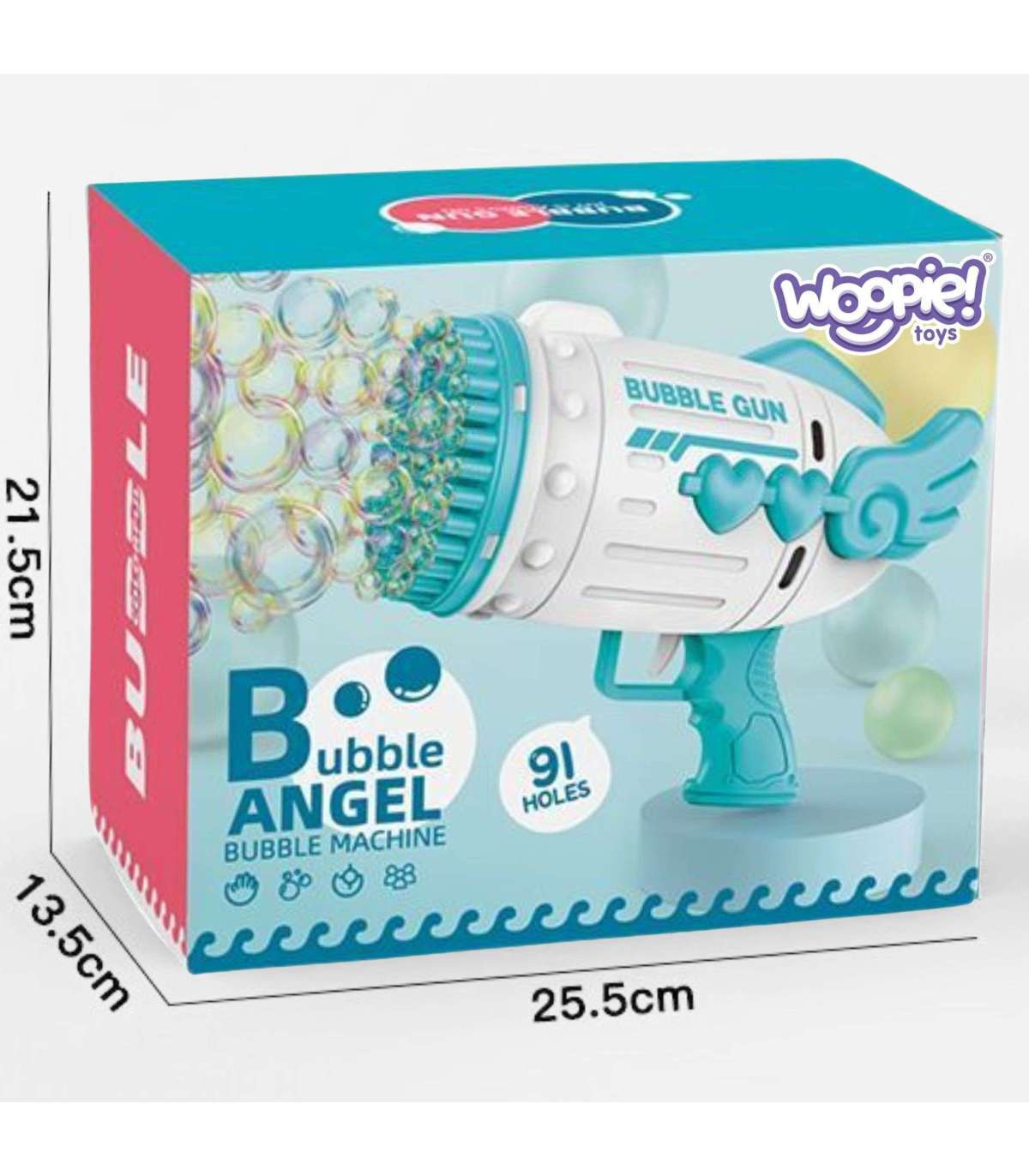 Seebimullimasin püstoli kujul brändilt WOOPIE on suurepärane mänguasi lastele. Väljuvad mullid paisatakse välja suurte sagedustega tänu 91 avale. Seebimullid on laste ja suurte lemmiktegevus. Seebimullipüss on täiuslik kingitus, sest see on lihtne kasutada ja pakub palju rõõmu — ühe päästiku vajutusega lendab püssist välja palju mulli. Lisaks sisaldab komplekt 2 anumit mullilahusega. Mänguasi sobib ideaalselt mängimiseks väljas ja toas. Mullide puhumiseks piisab pärast aku paigaldamist sellest, et kastke püss alusel oleva lahuse sisse, vajutage päästikule ja valmis! Silmapilkselt tekib ilus, muinasjutuline maailm, mis rõõmustab nii lapsi kui ka täiskasvanuid.