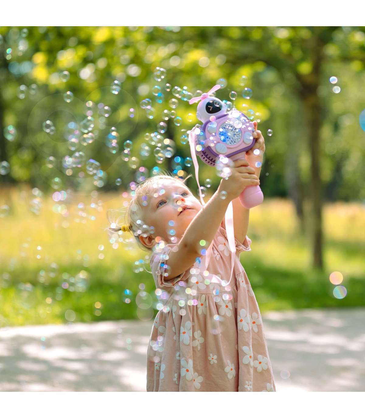 - Lülitatakse sisse nupu vajutamisel ja paiskab automaatselt mullikesi