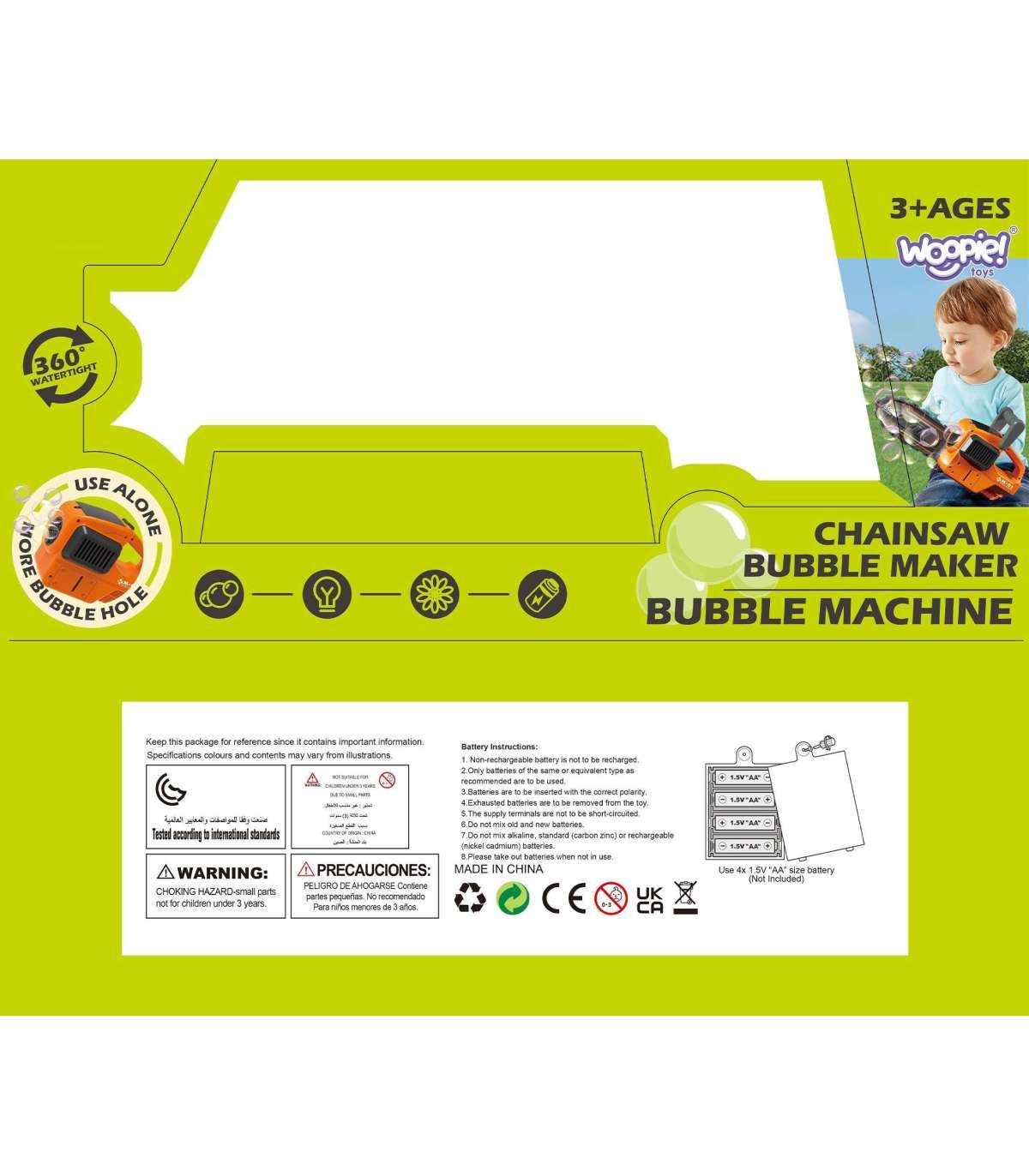 Seebimullipüstol Seebimullipüstol - kettsaag brändilt WOOPIE on erakordne vidin, mis viib mängu täiesti uuele tasemele. See pole lihtsalt mänguasi, vaid tõeline atraktsioon, mis sobib igale peole, aeda või tavalisele pärastlõunale õues. Tänu oma uuenduslikule konstruktsioonile ja ainulaadsetele visuaalefektidele saab see kindlasti nii laste kui täiskasvanute lemmikuks, pakkudes palju rõõmu ja unustamatuid hetki. Sae "tera" kinnitus on eemaldatav, mis tähendab, et silmapilkselt saate muuta selle kettsaagist stiilseks mullimasinaks. Tõeline maagia algab, kui püstolit sisse lülitada. Avause, kust mullid väljuvad, mitte ainult ei sära, vaid ka pöörleb 360 kraadi. See liikumine loob hämmastava efekti, suurendab visuaalset elamust ja paneb mullid õhus hõljuma kõige ootamatumatesse suundadesse.