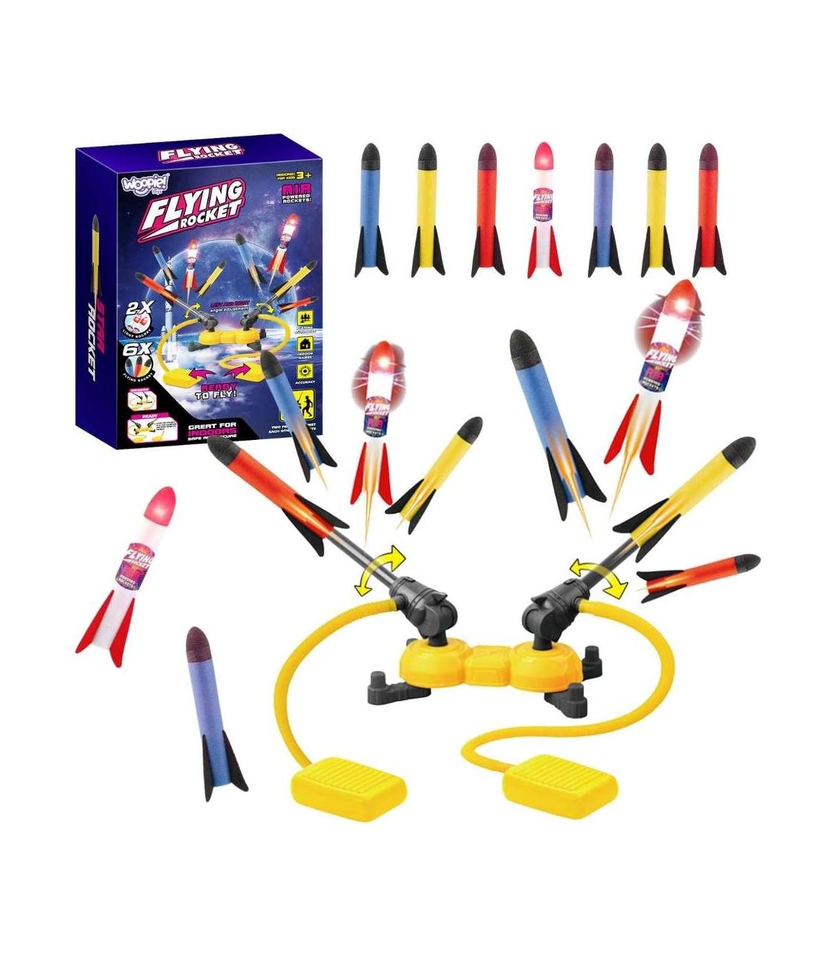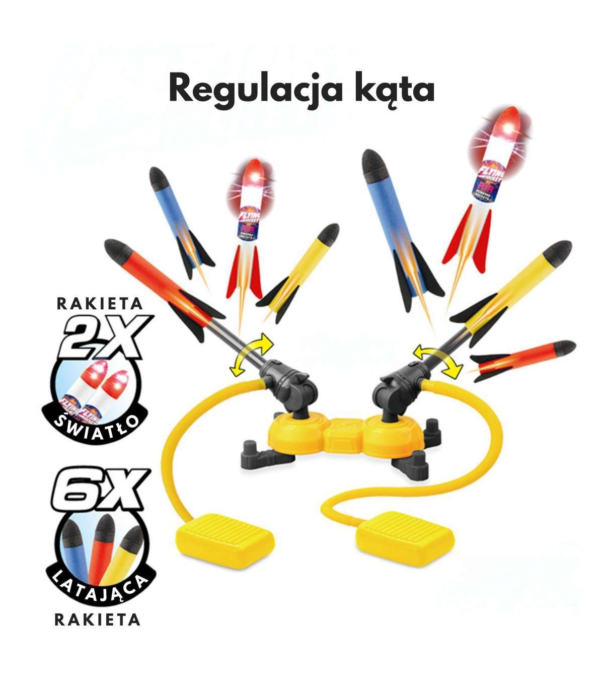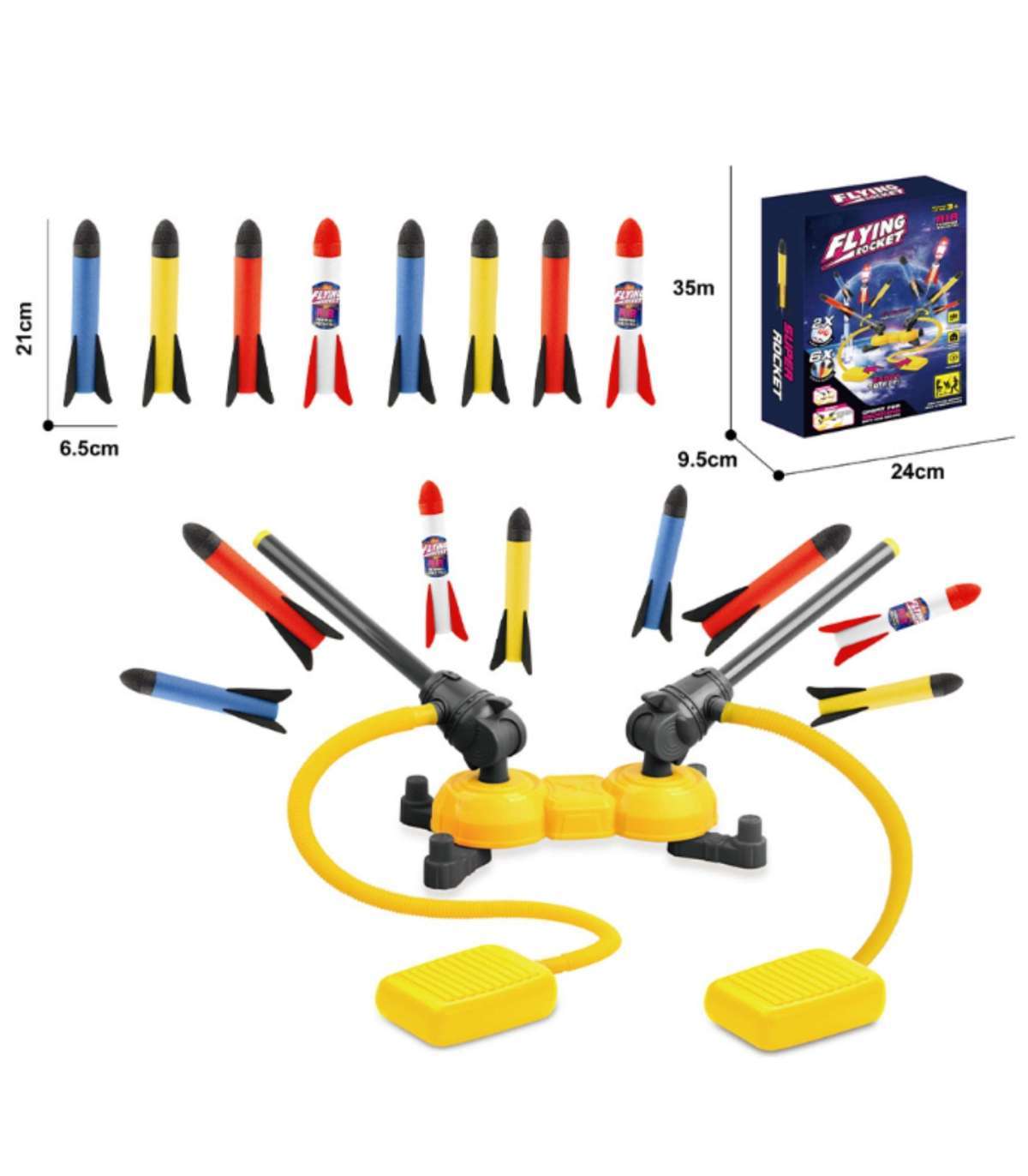 Topeltvahust raketikäiviti reguleeritava nurga ja suunaga brändilt Woopie tagab suurepärase lõbu värskes õhus! See komplekt võimaldab kahel inimesel võistelda või koos mängida samaaegselt. Lihtsalt vajutage pumpa jalaga, et rakett õhku tõuseks! Värvikad, kerged raketid, valmistatud pehmest vahust, on laste jaoks ohutud ja pakuvad iga stardi ajal rohket emotsiooni. Reguleeritavad käivitid võimaldavad seadistada nurga (vahemikus 30° kuni 90°) ja tulistamissuuna. Suurepärane idee aktiivseks mänguks aias, pargis või mänguväljakul.