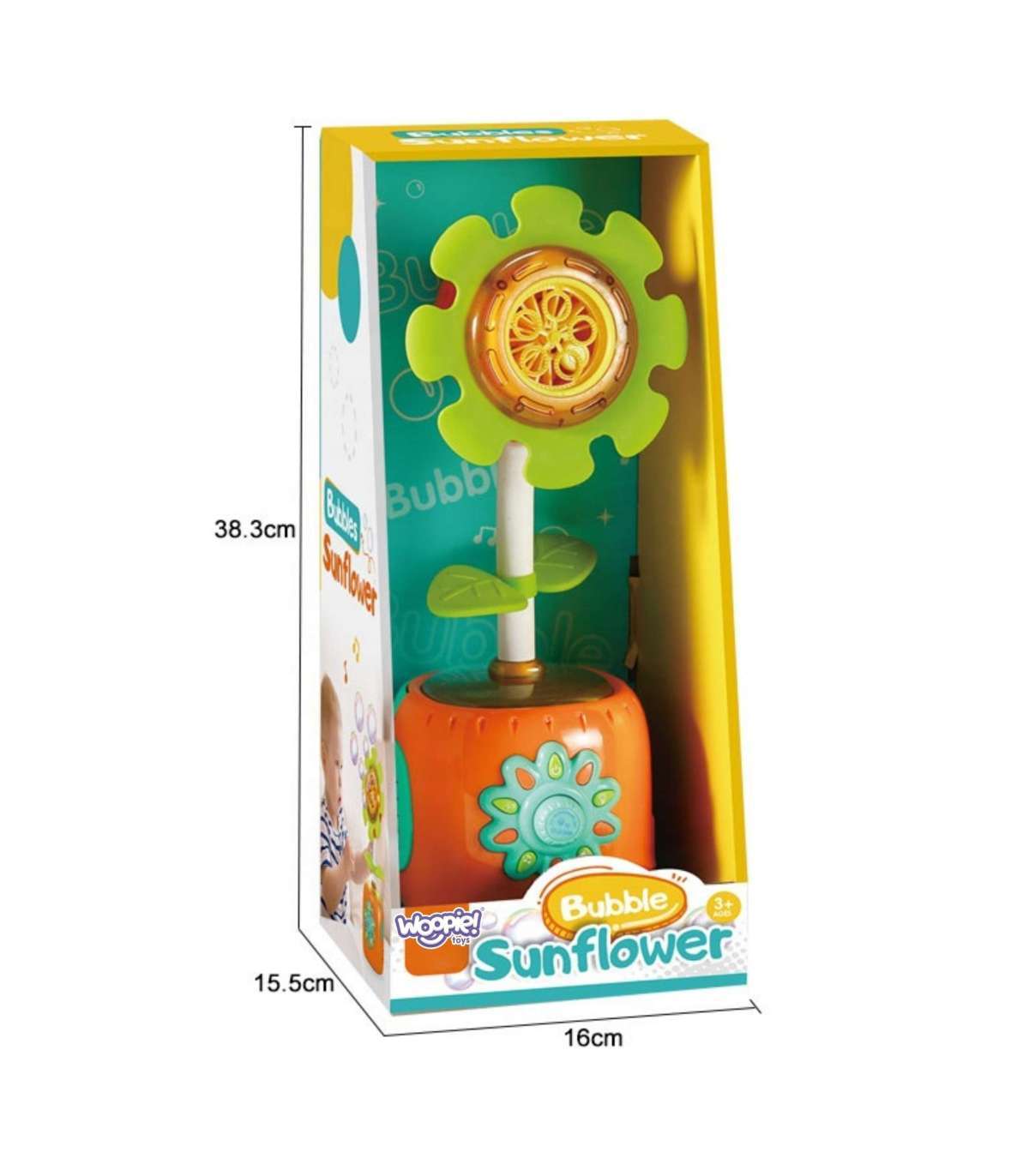 Viige laste mängimine järgmisele tasemele ainulaadse päevalille-kujulise seebimullimasinaga brändilt Woopie! See erakordselt värvikas ja atraktiivne päevalille-kujuline mänguasi köidab tähelepanu juba esimesest pilgust. Piisab ühest nupuvajutusest, et värvikast päevalillest hakkaksid tulema kümned sätendavad mullid, mis rõõmustavad iga last. Päevalille painduv vars võimaldab mullide tekitamist ükskõik millises asendis. Lisa valgustusefektid ja rõõmus muusika muudavad mängu tõeliseks etenduseks, mis kaasab kõik meeled ja garanteerib unustamatud hetked nii kodus kui ka värskes õhus.