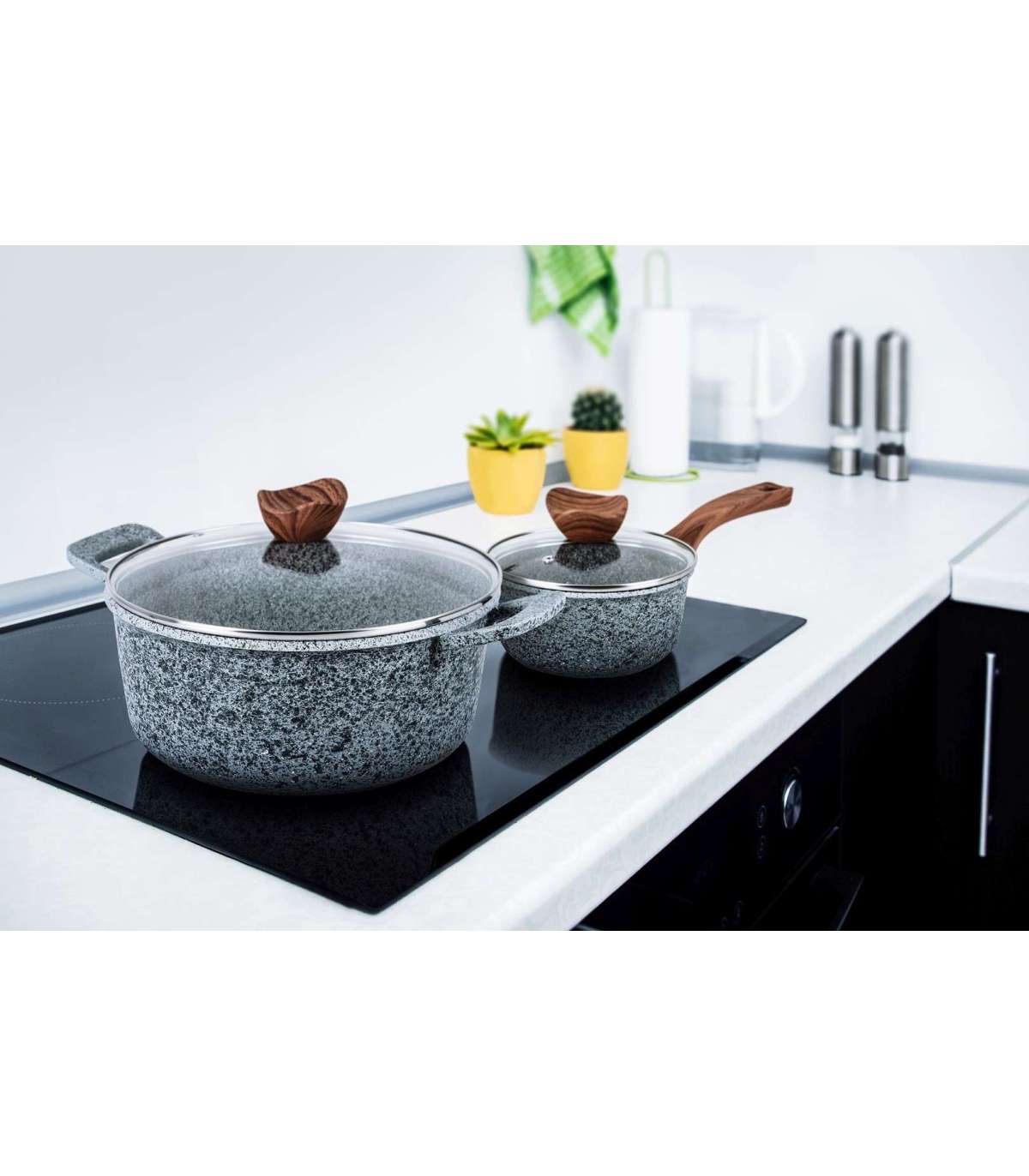 PROMIS Set of pots GRANITE, saucepan 16 cm, pots 20,24,28 brown handles
