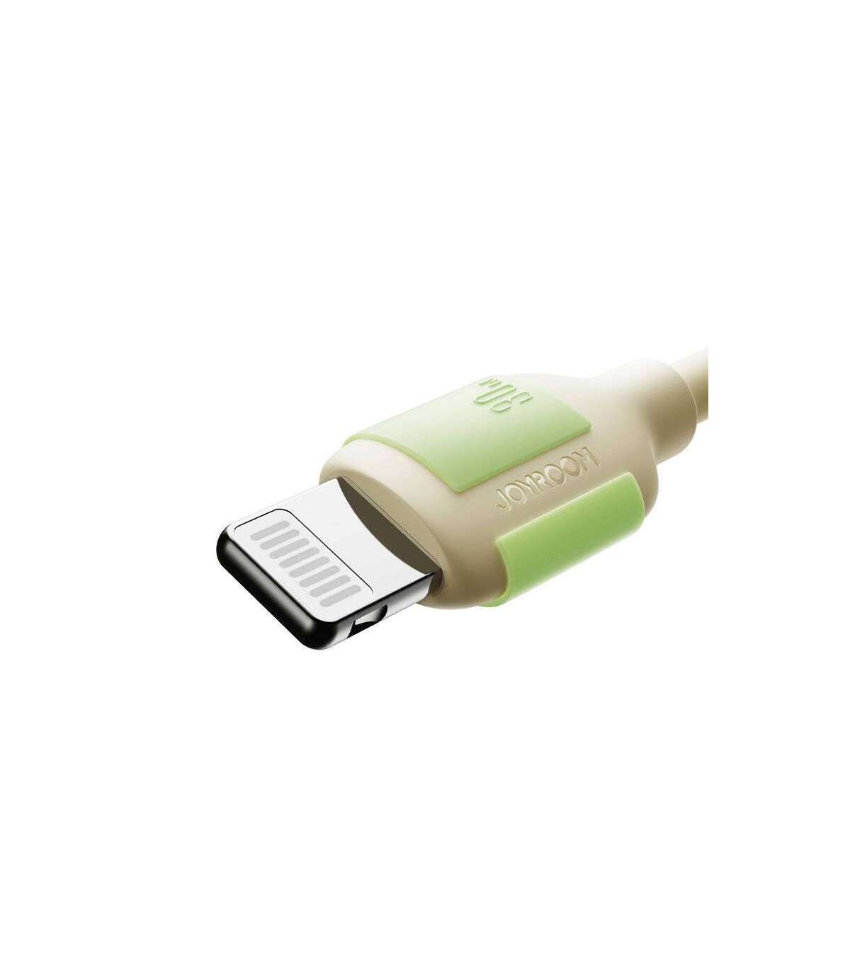 Looking for a reliable cable that provides fast charging and allows data transmission? The Joyroom S-A53 offers 30 watts of power, and with a thicker tinned copper core, it reduces resistance for faster power transfer. It's made of liquid silicone and TPE, so it's extremely flexible, pleasant to the touch and resistant to tangling no. Its design also includes glow-in-the-dark components.