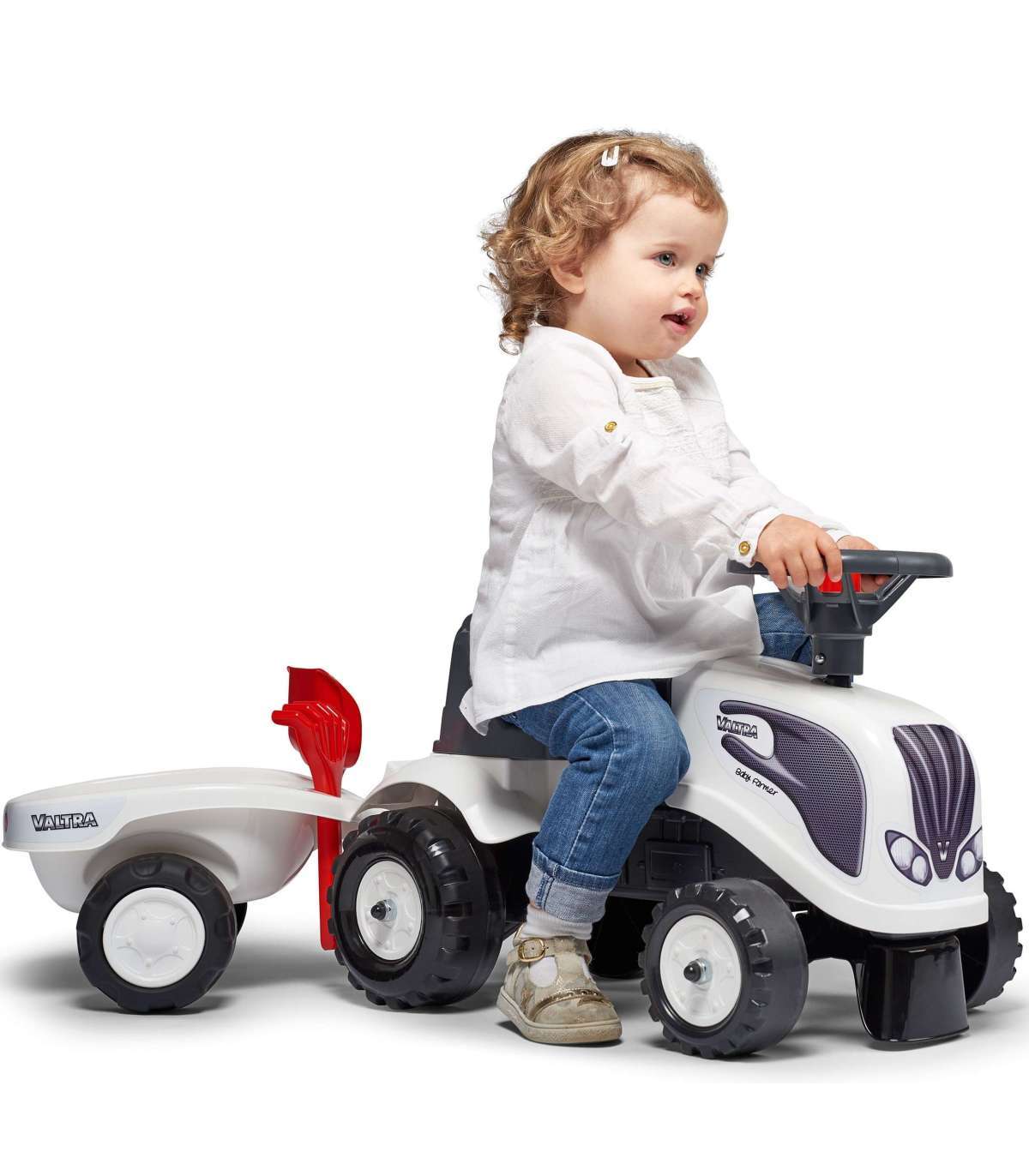 FALK Traktorek Baby Valtra Biały z Przyczepką + akc. od 1 roku