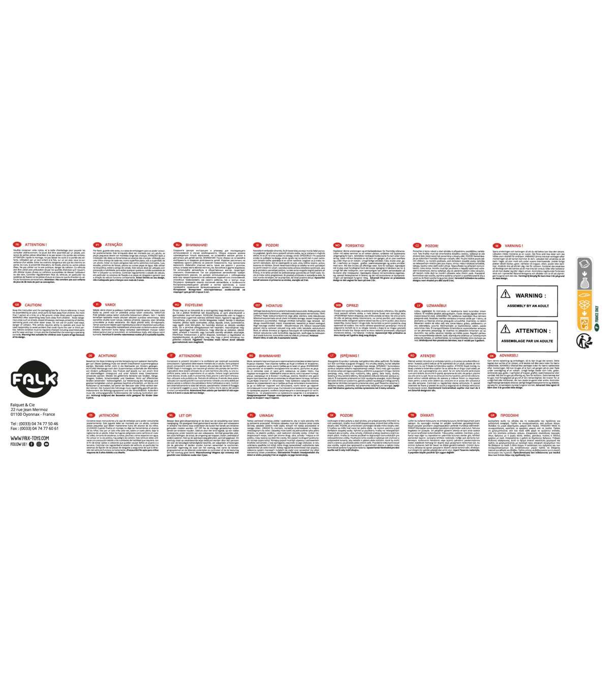 Falk jest czołowym europejskim producentem wysokiej jakości pojazdów na pedały. W ofercie firmy znajdują się między innymi traktory na licencji takich marek jak Claas, Renault, McCormick, Kubota, Case IH i innych. Wszystkie pojazdy produkowane są we Francji z wysokiej jakości materiałów.