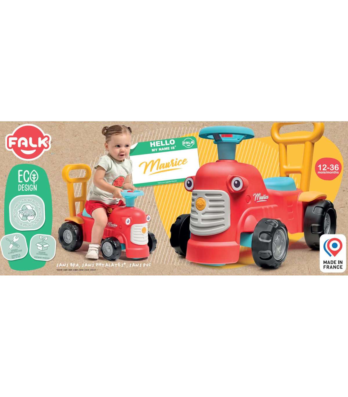 FALK Maurice Traktorek Jeździk Czerwony Pchacz Odpychacz Schowek od 1 roku