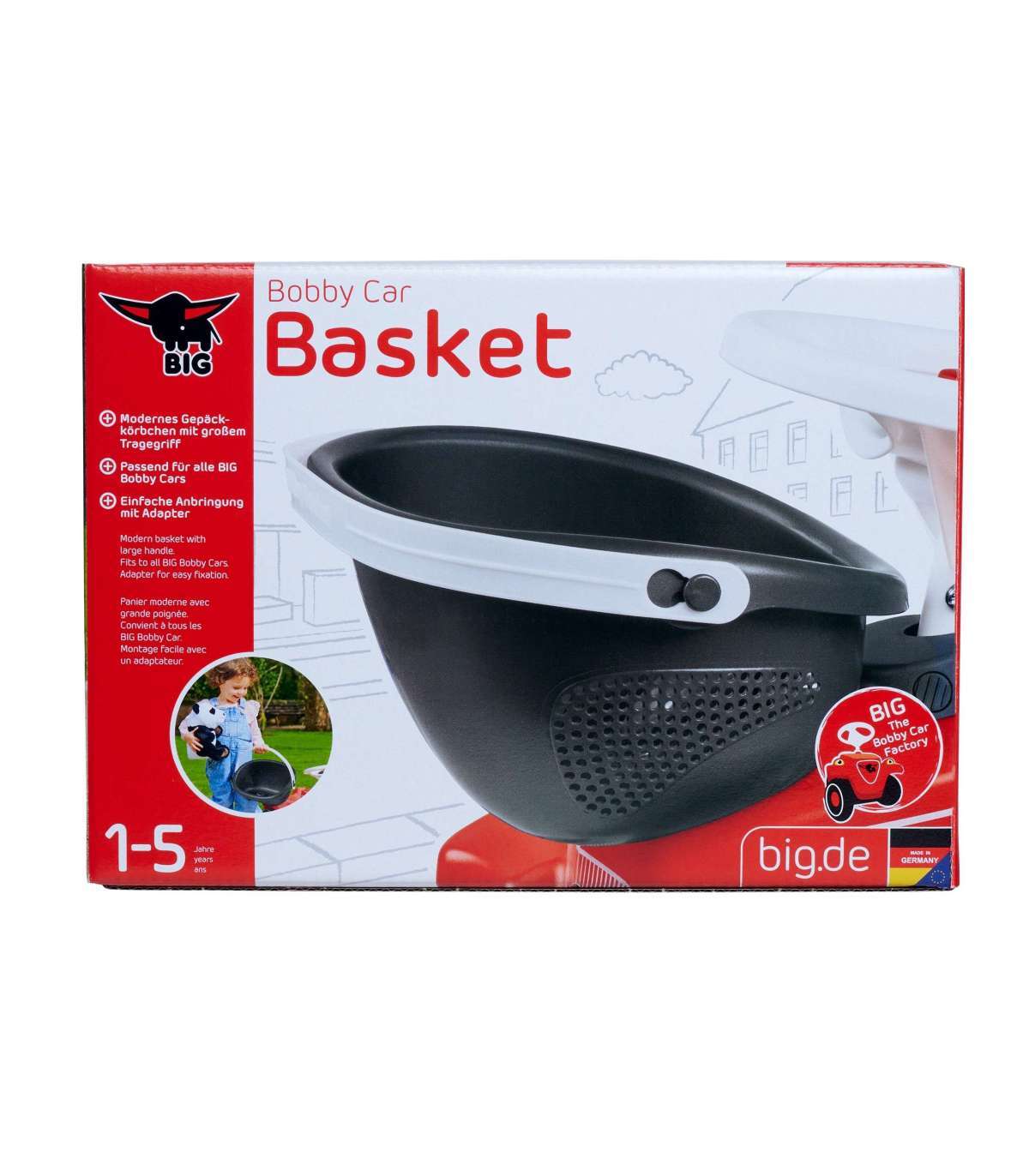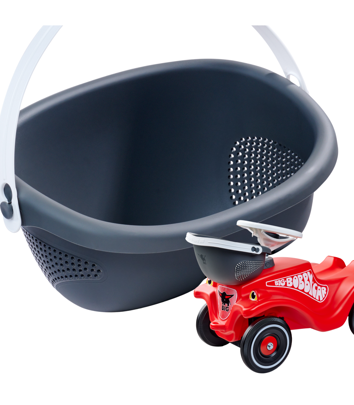The Bobby Car ride-on basket, from the renowned BIG brand, is a practical accessory. Whether you're on your way to the playground, preschool, or visiting Grandma and Grandpa, a favorite toy should always be with your child, especially if they're preschool-aged! With the BIG Bobby-Car basket, children can now take their toys with them on trips with the Bobby Car and transport them independently . The Bobby Car ride-on basket is easy to attach and compatible with any Bobby Car model. Using the included adapter, the basket mounts under the Bobby Car steering wheel in a few simple steps. The adapter fits any original Bobby Car model, such as the Bobby Car Classic, Bobby Car Neo, and Bobby Car Next. Children always have the basket in view while driving and are not disturbed by it while steering. Thanks to the wide, movable handle, the carrier can be easily removed and carried by hand . Children don't have to leave their teddy bear or toy car alone . The basket is made of durable, UV-resistant materials that allow for easy cleaning.