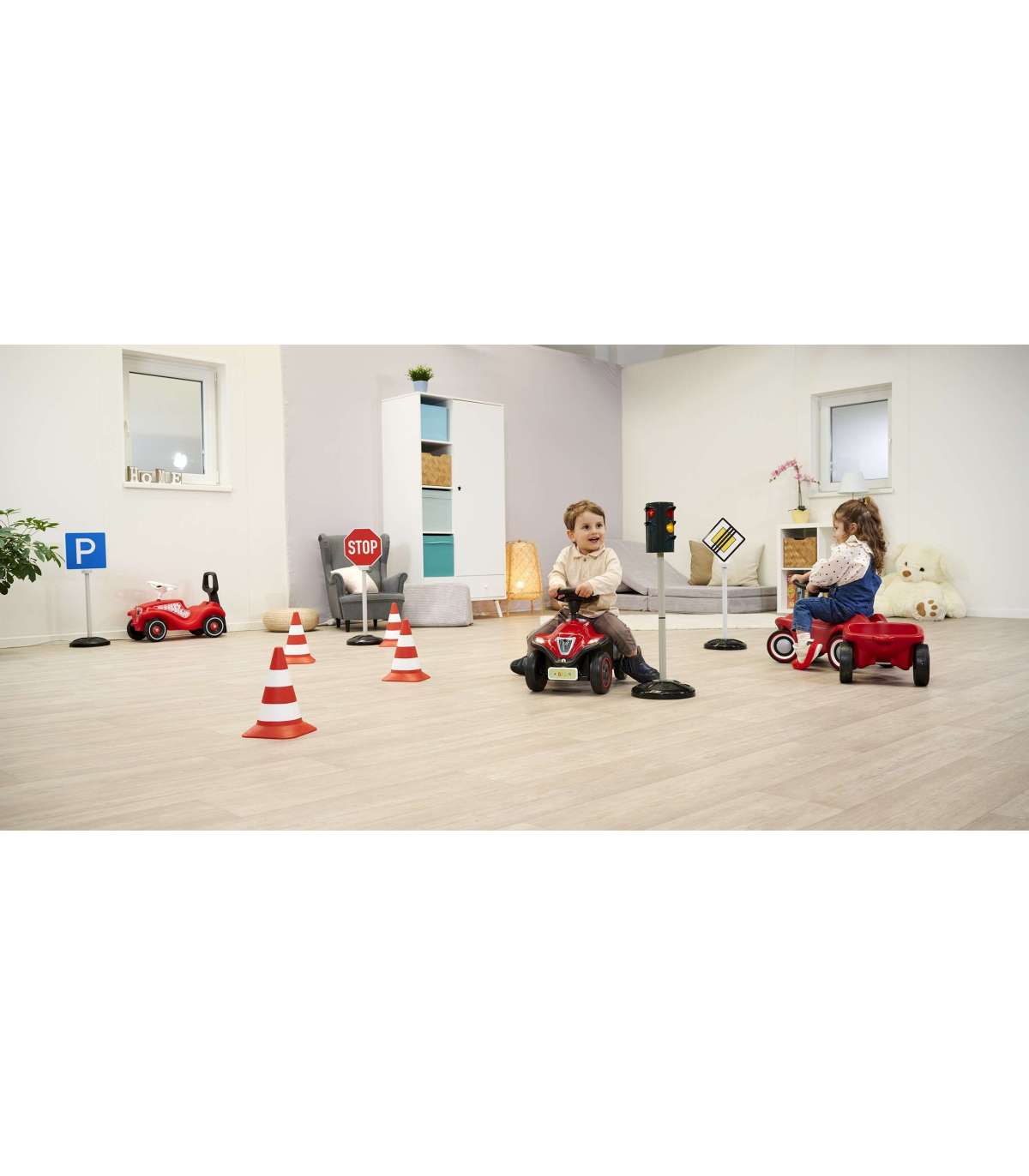 - - Zabawa i edukacja w jednym – świetne uzupełnienie toru dla BIG Bobby Car i innych pojazdów dziecięcych.