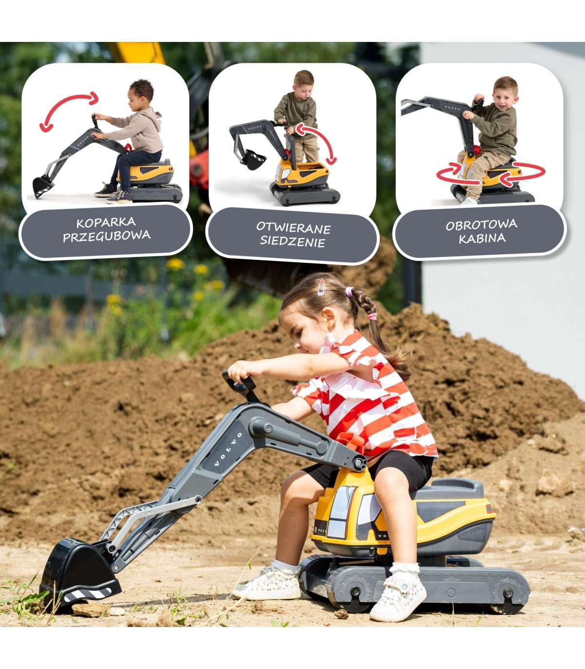 Realistyczna koparka Volvo od FALK Każdy detal został zaprojektowany z wizją i troską, a koparka wiernie przypomina prawdziwą wersję. Koparka Volvo to bardzo solidna konstrukcja i wysokiej jakości trwałe materiały. Kabina obraca się o 360° a łyżka koparki jest obrotowa. Zabawka jest bardzo zwrotna, łatwa w obsłudze - doskonale sprawdzi się w ogrodzie czy na plaży.