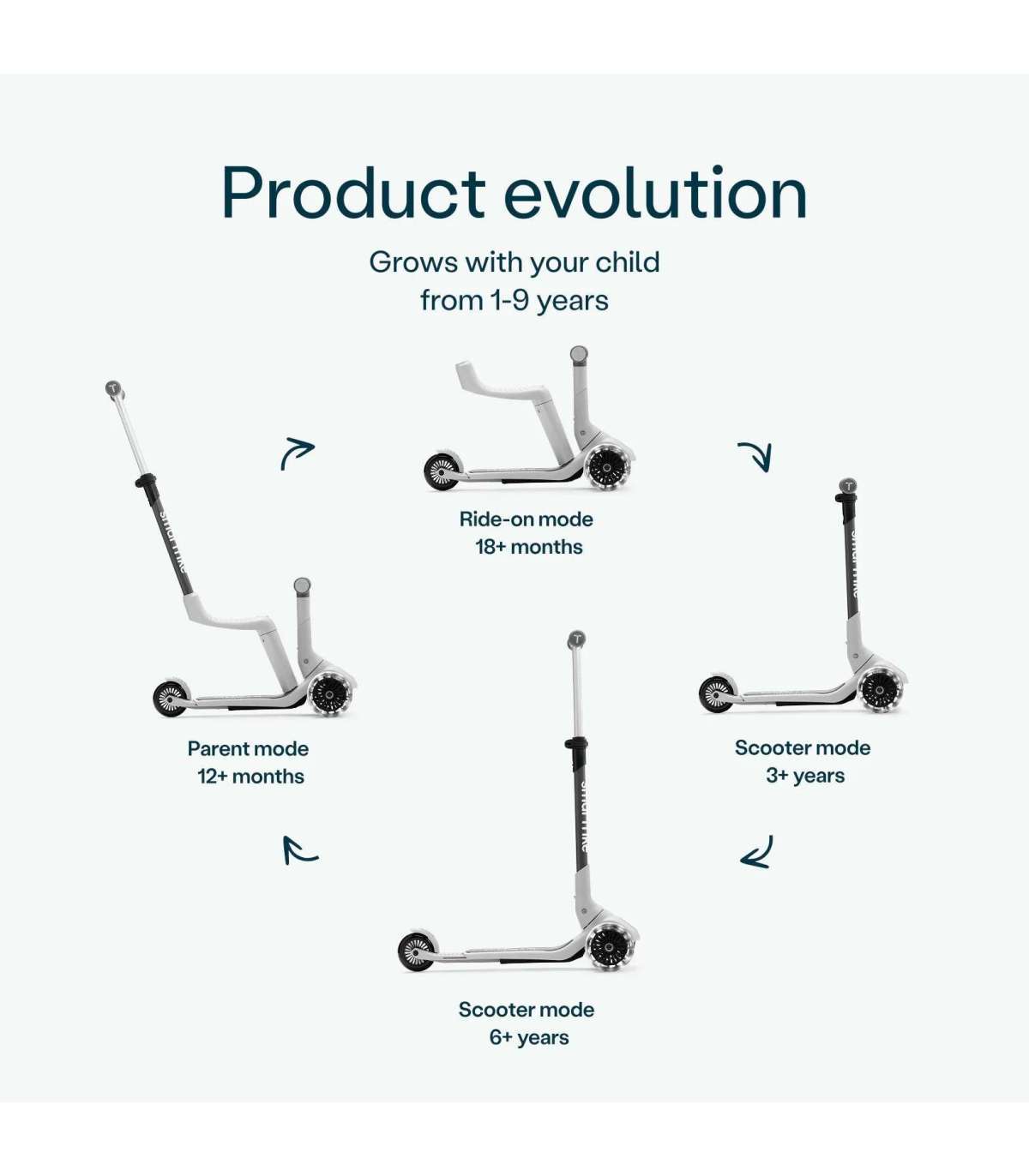 Xtend Mini-ride kasvab koos lapsega 12 kuust kuni 9 aastani, muutudes sujuvalt väikelaste pealeistutavast rattast tõukerattaks.