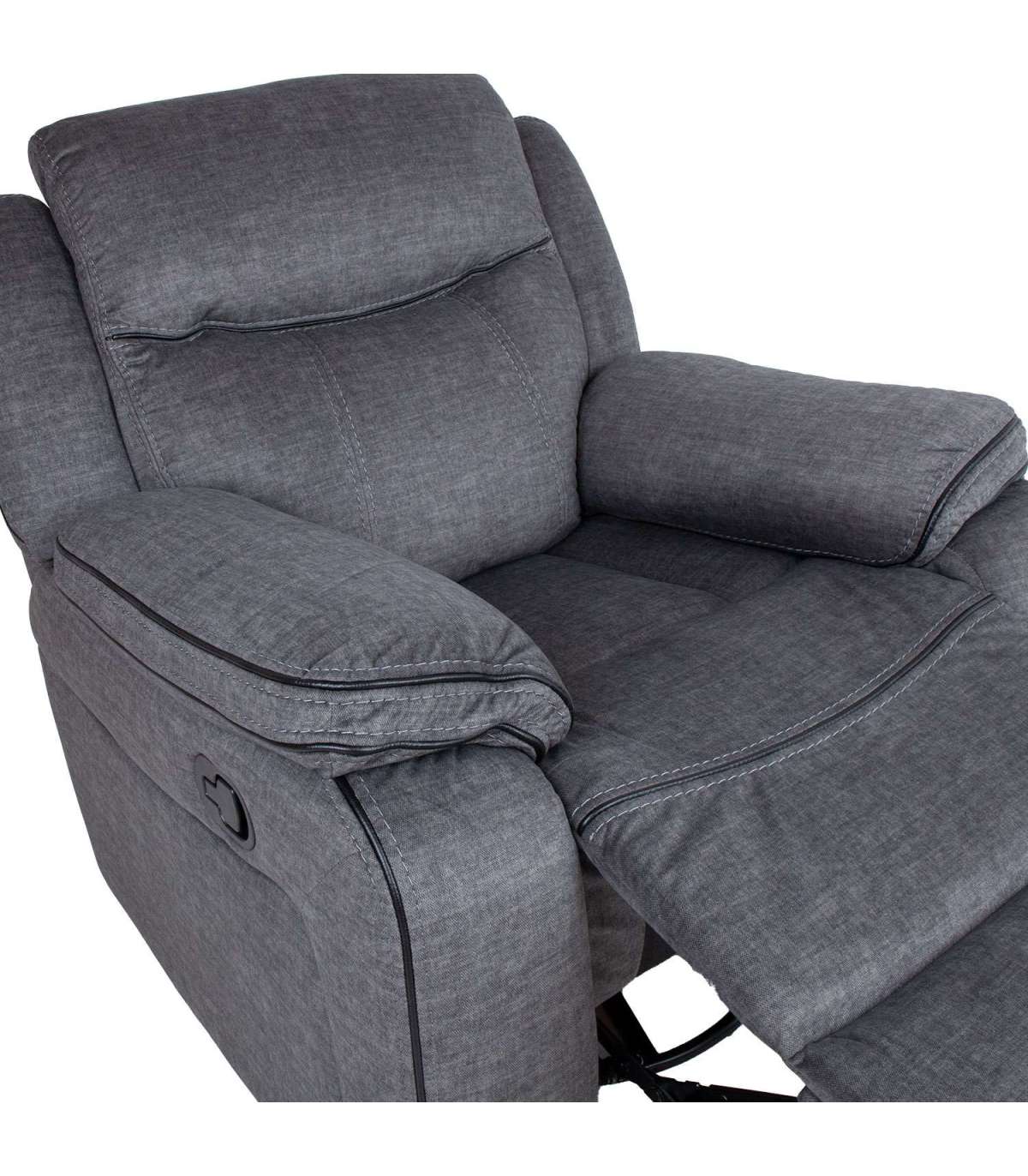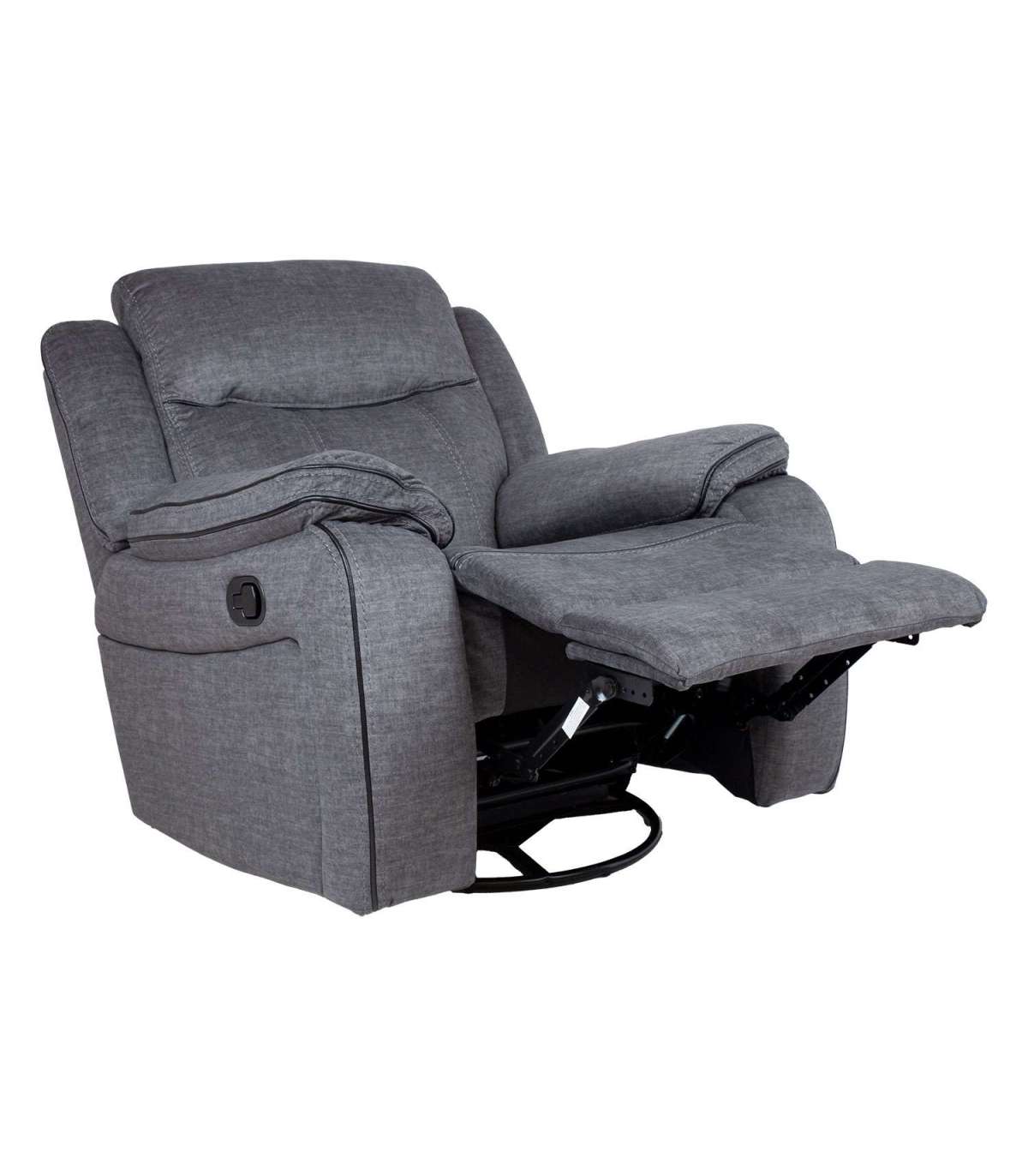 Tugitool GENTRY kiikuv ja pöörlev manuaalne recliner, hall. Recliner tüüpi tugitooli jalatoe asendit on võimalik muuta manuaalse mehhanismi abil. Jalatuge üles tõstes liigub seljatugi sujuvalt kaasa. Jalatoe tõstmiseks tõmmake tooli paremal välisküljel asuv kang üles. Surudes jalatuge alla fikseerub see automaatselt algasendisse. Kiikuv tugitool pöörleb 360ŗ. Kattematerjal: 100% polüesterkangas, mustad kunstnahast dekoratiivsed kandid õmbluste vahel. Karkass ja vedrustus: vineer, puit, metall. Polsterdus: polüuretaanvaht 24-30kg/m³. Tugitooli üldmõõdud on 96x98xH102cm. Istme laius 56cm, istme sügavus 55cm, istme kõrgus 52cm. Käetoe kõrgus maast 66cm, käetoe laius 26cm.