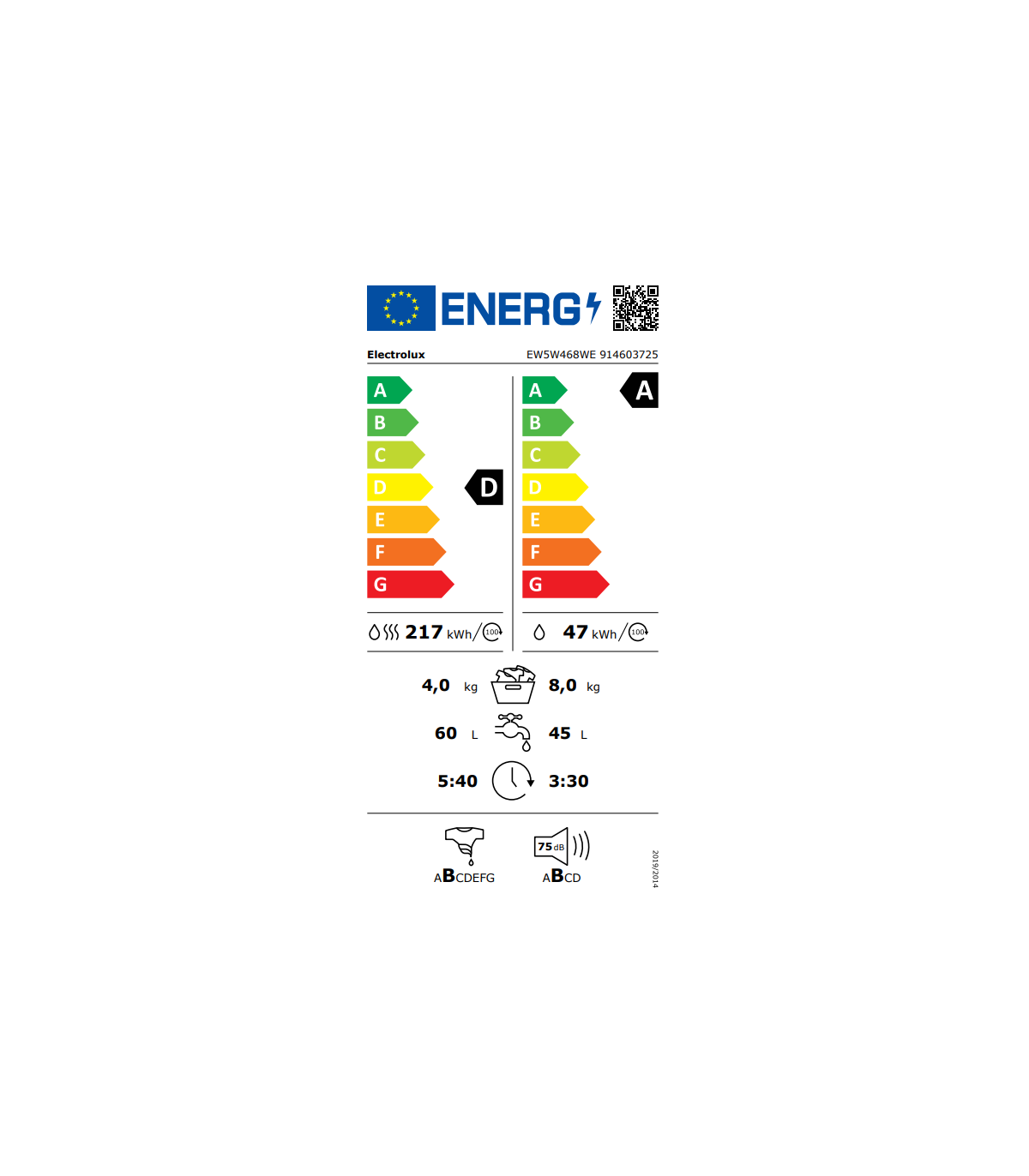 - Energy efficiency class (Washing + Drying)