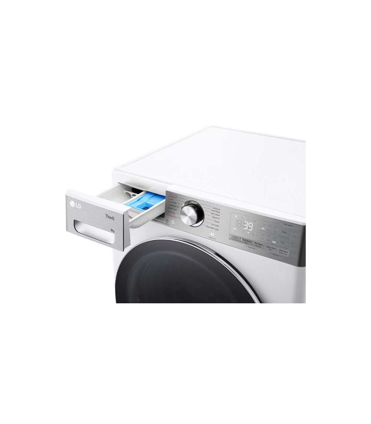 LG | Washing Machine | F2WR909P3W | Energy efficiency class A | Front loading | Washing capacity 9 kg | 1200 RPM | Depth 47.5 cm | Width 60 cm | LED | Steam function | Direct drive | Wi-Fi | White