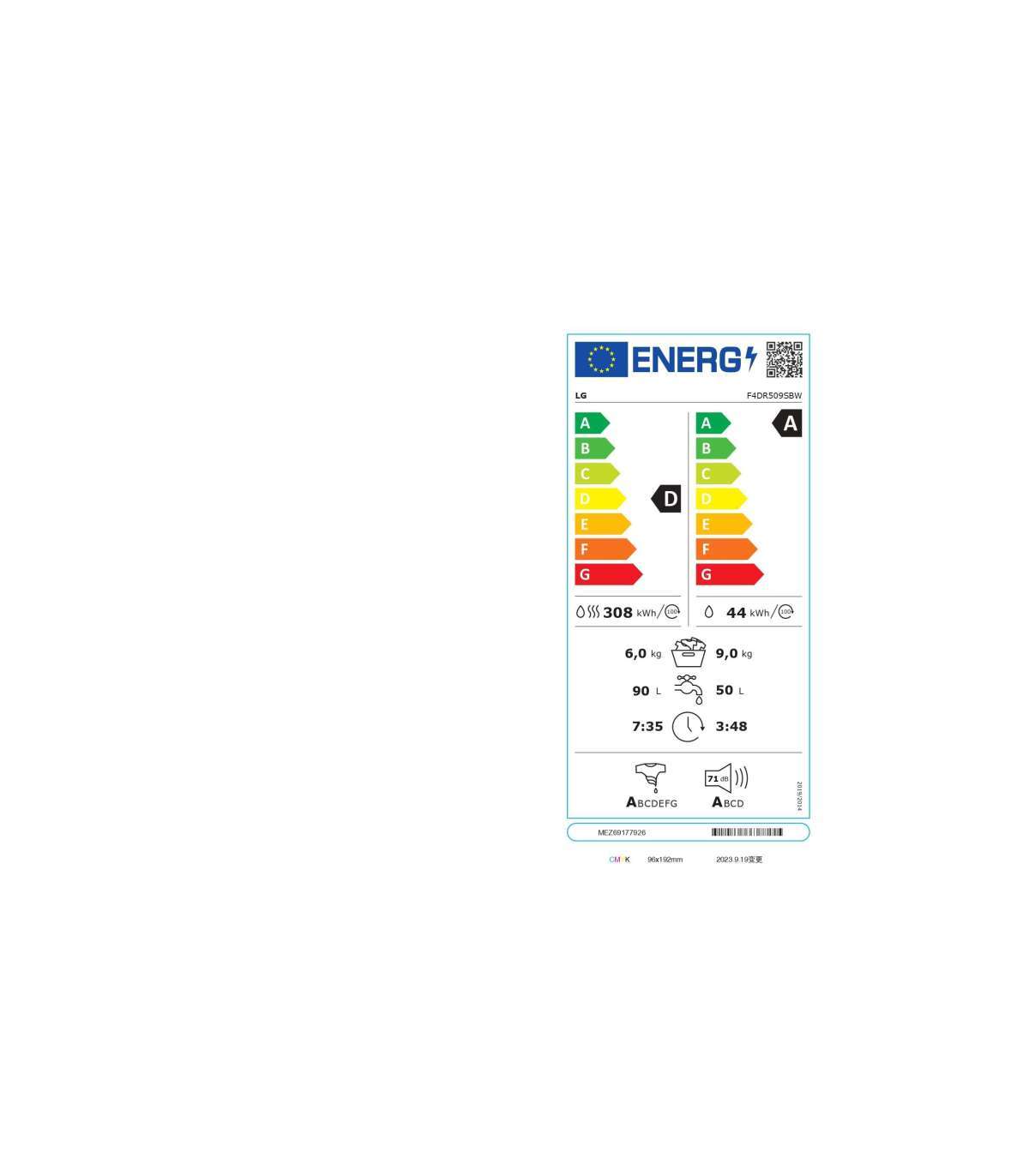 LG | Washing machine with dryer | F4DR509SBW | Energy efficiency class A | Front loading | Washing capacity 9 kg | 1400 RPM | Depth 55 cm | Width 60 cm | Display | Rotary knob + LED | Drying system | Drying capacity 6 kg | Steam function | Direct drive | White