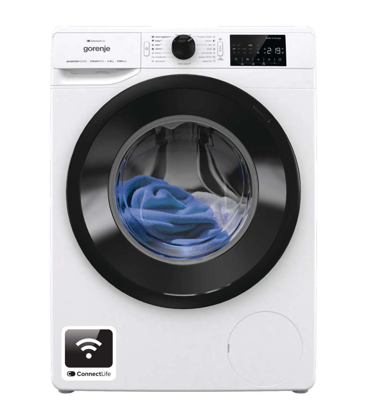 Gorenje Washing Machine | WPNEI82SBSWIFI | Energy efficiency class B | Front loading | Washing capacity 8 kg | 1200 RPM | Depth 47 cm | Width 60 cm | LED | Steam function | Wi-Fi