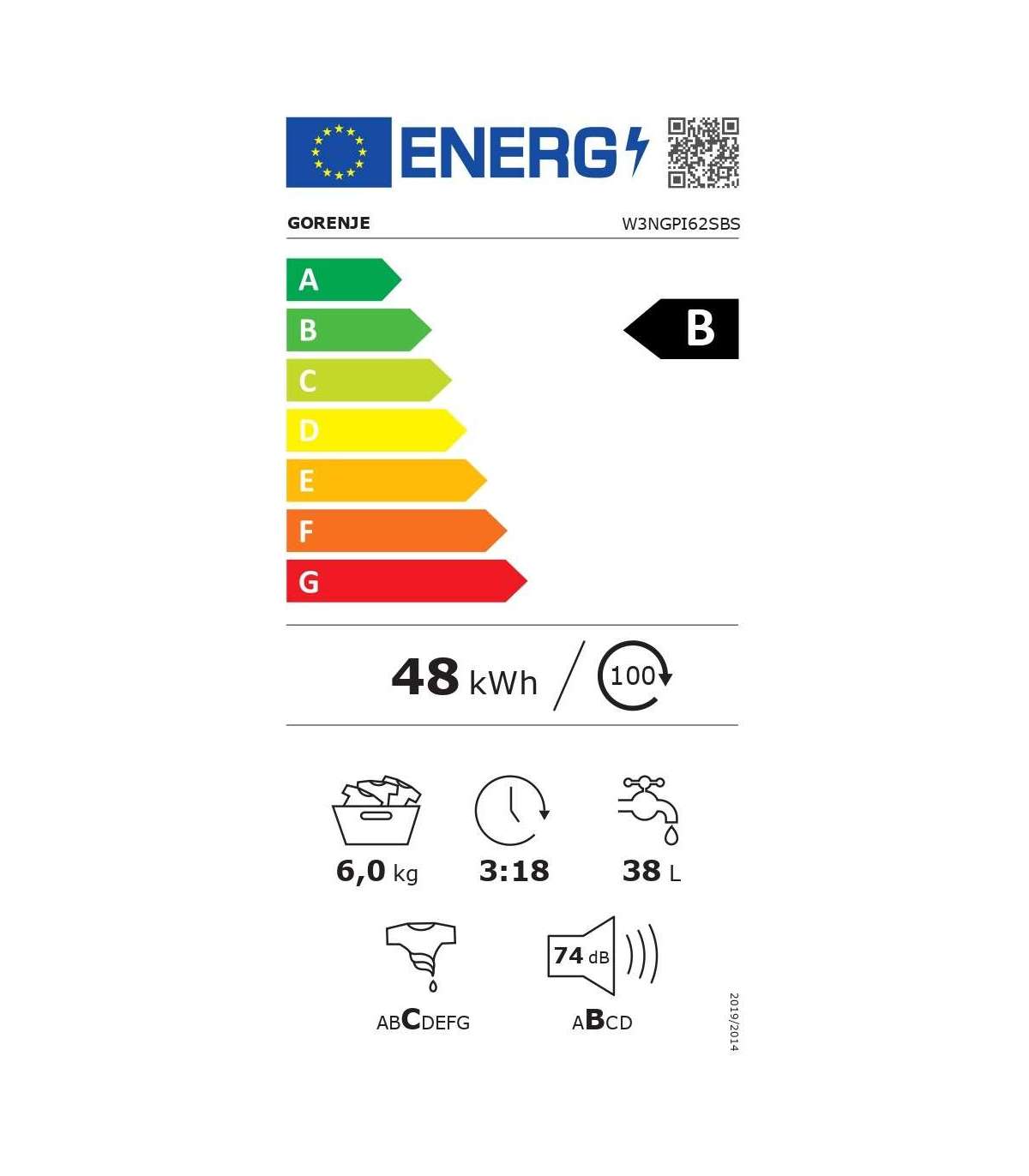 Gorenje Washing Machine W3NGPI62SBS Energy efficiency class B Front loading Washing capacity 6 kg 1200 RPM |