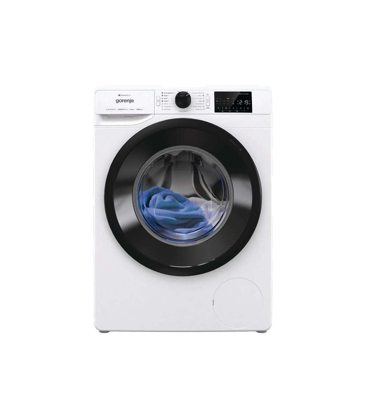 Gorenje Washing machine | WPNEI82A1SWIFI | Energy efficiency class A | Front loading | Washing capacity 8 kg | 1200 RPM | Depth 55 cm | Width 60 cm | Display | LED | Steam function | White